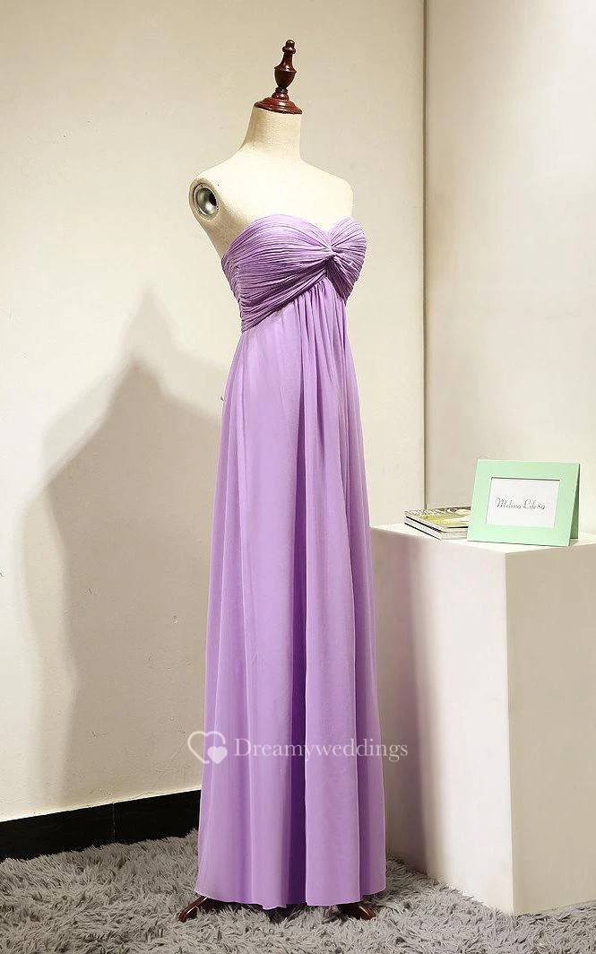 Sweetheart Pleated A-line Chiffon Floor Length Dress Lilac