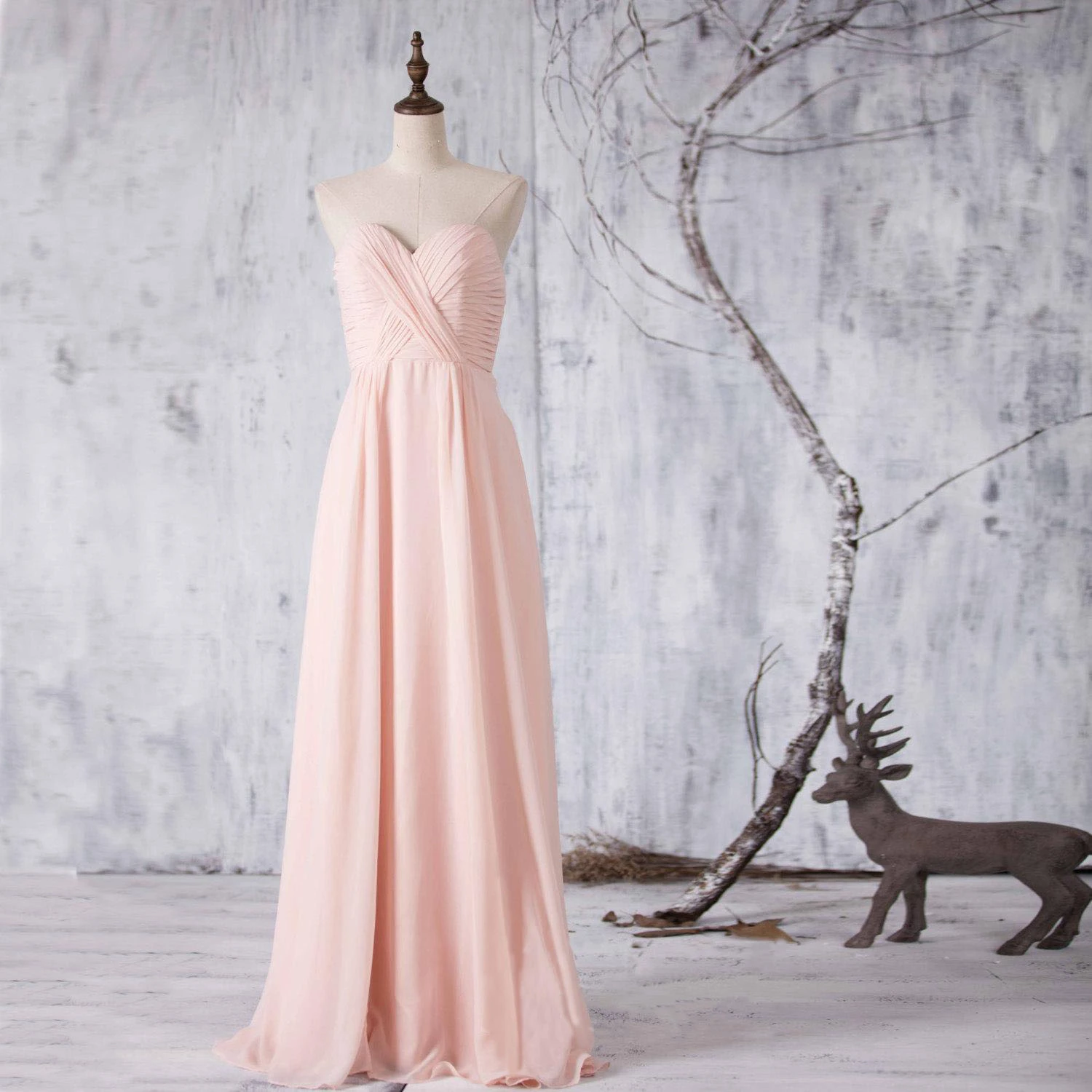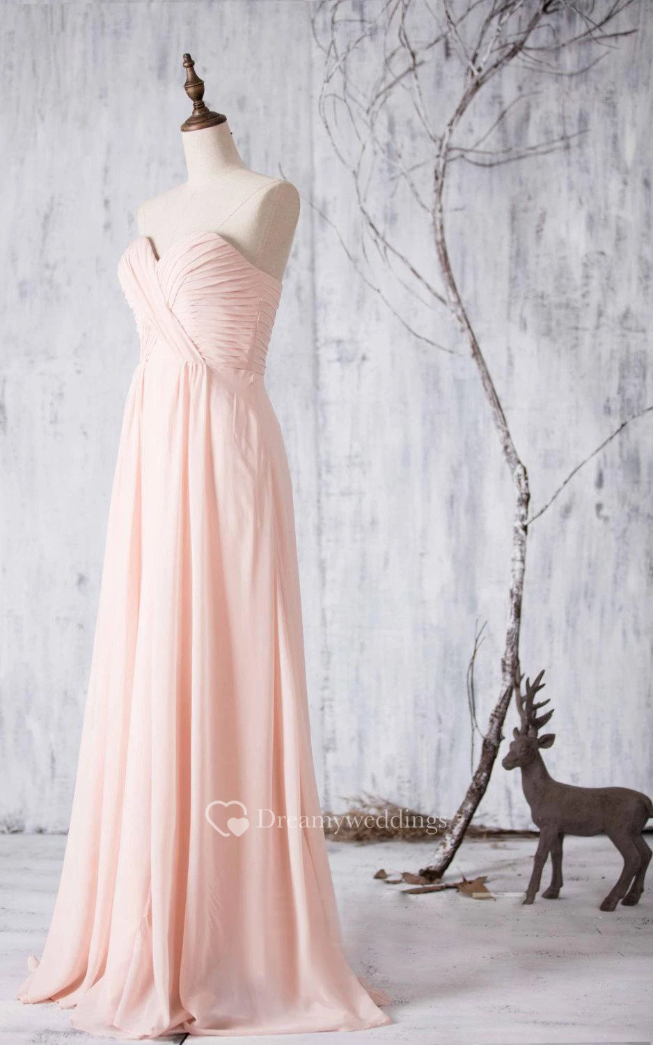 Sweetheart Pleated A-line Chiffon Long Dress Ruched Top