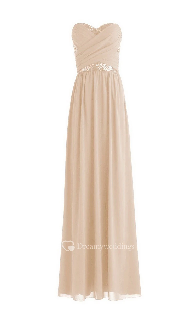 Sweetheart Pleated Chiffon Dress With Sequins