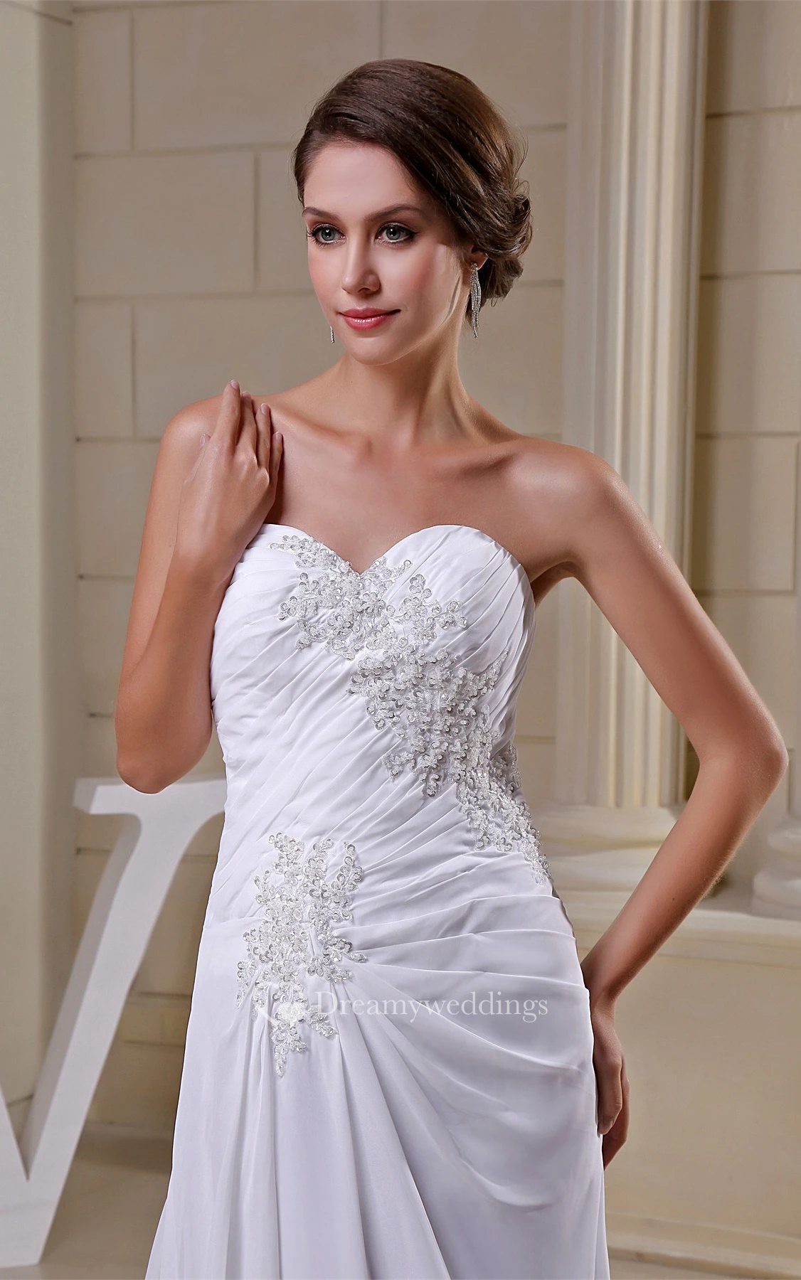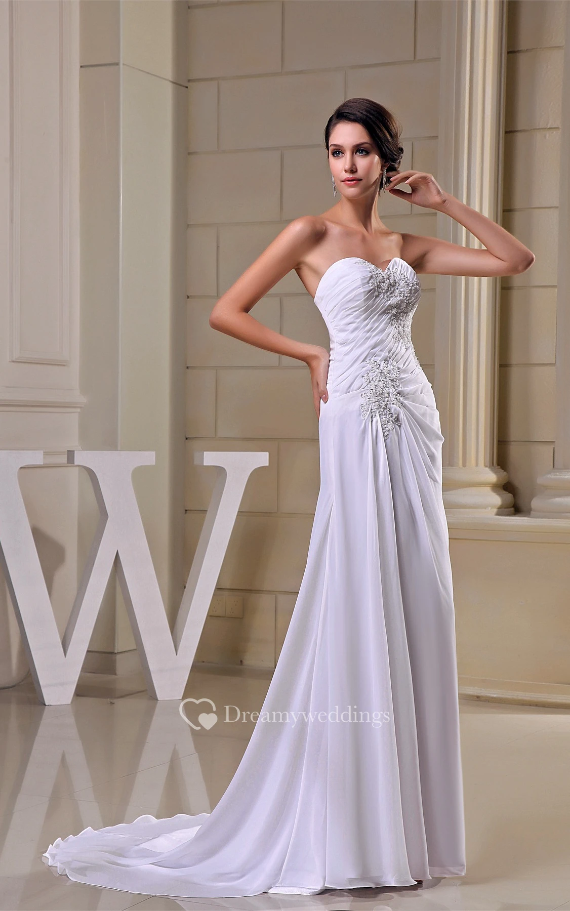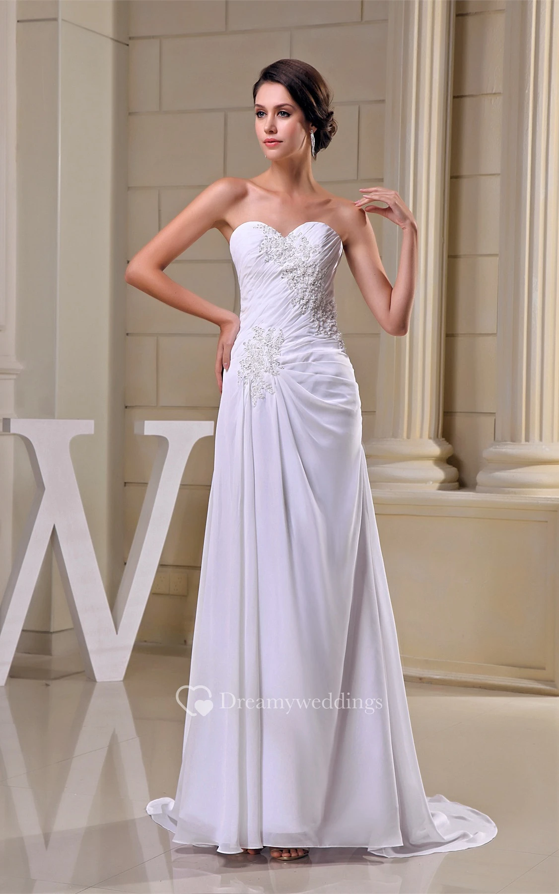 Sweetheart Pleated Long Criss-Cross Sweep Train and Dress With Appliques
