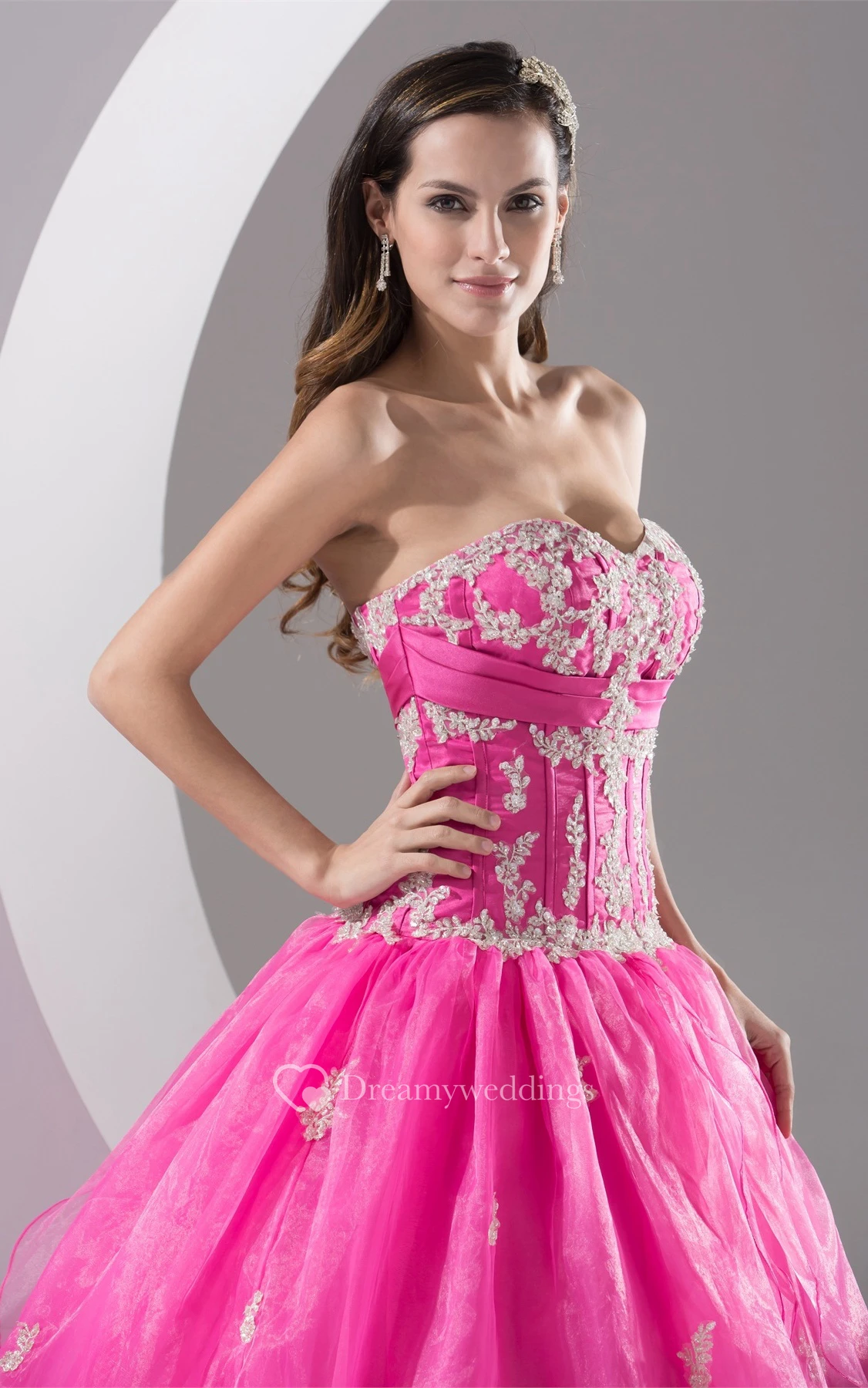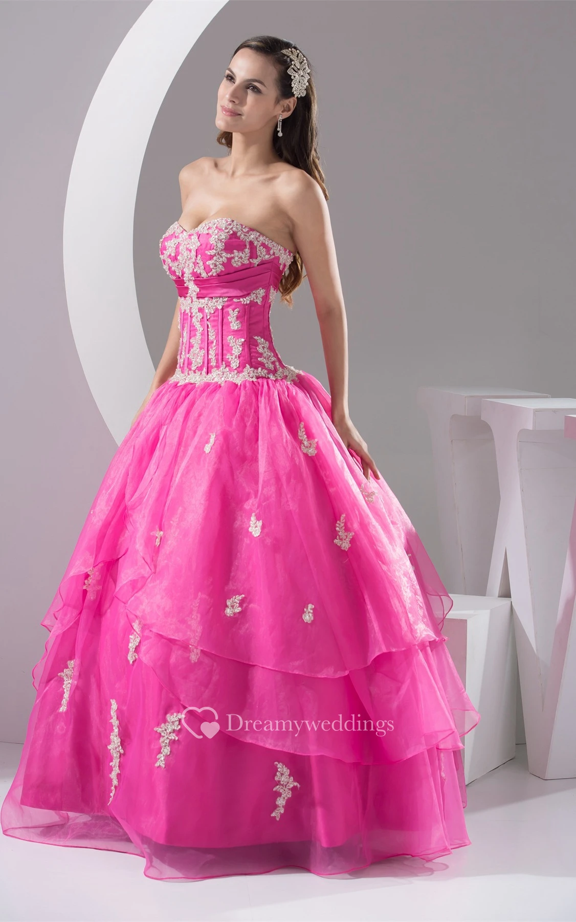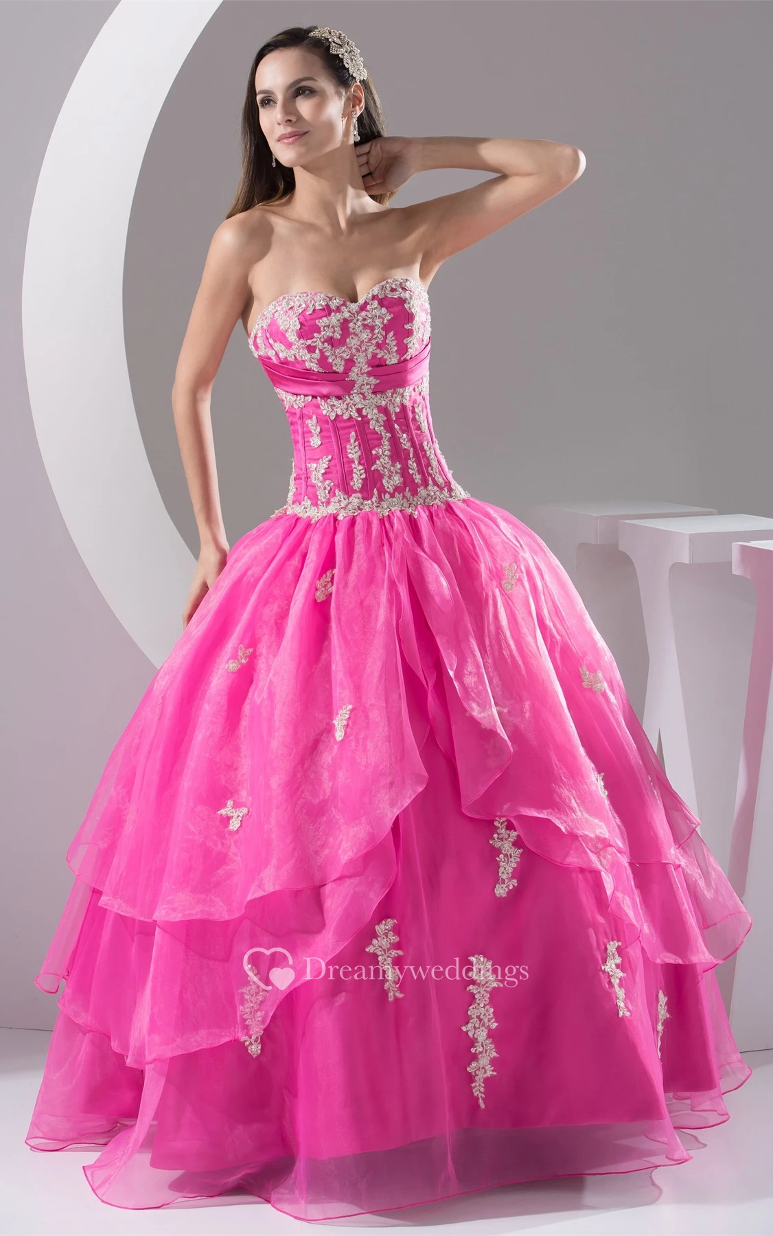 Sweetheart Pleated Ruched Bodice and Ball-Gown With Appliques