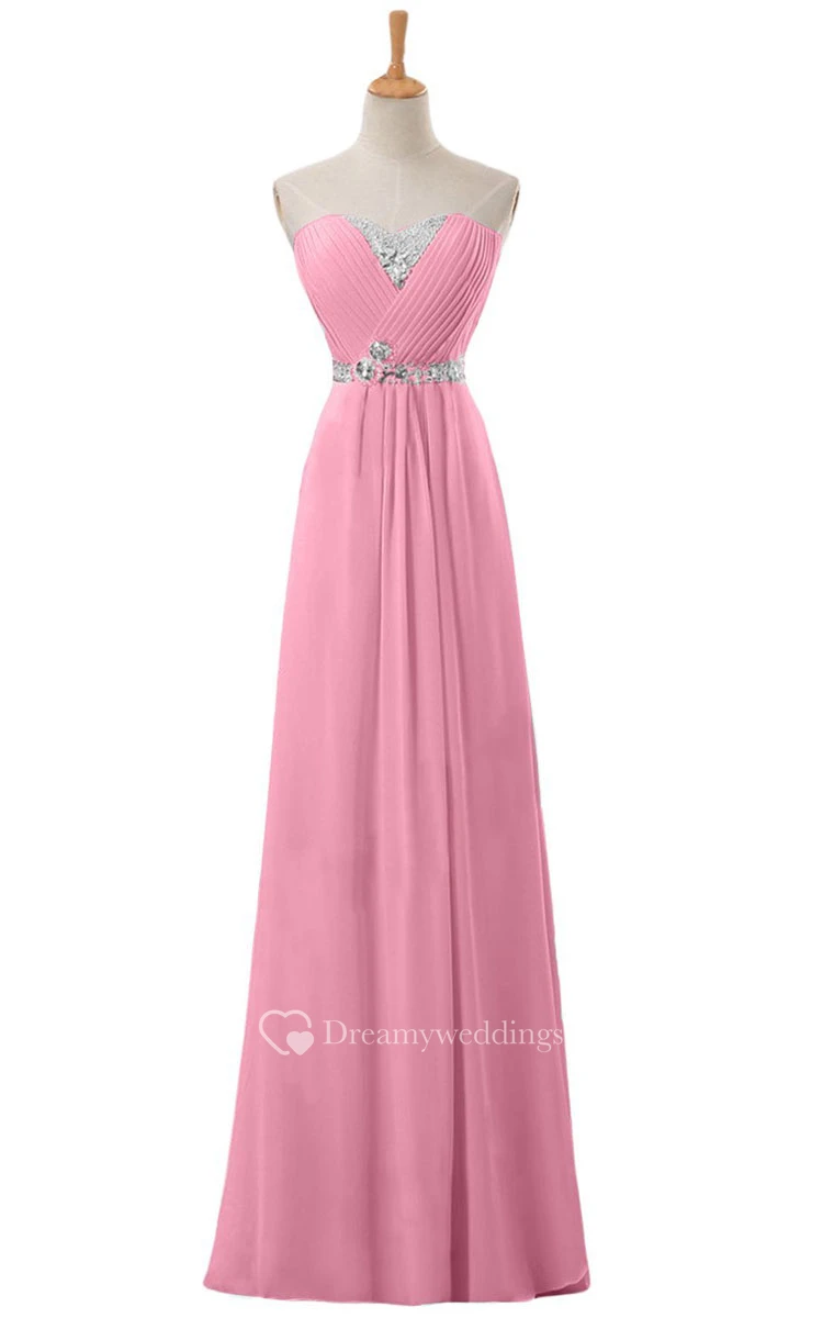 Sweetheart Rhinestoned Pleated A-line Gown With Zipper Back