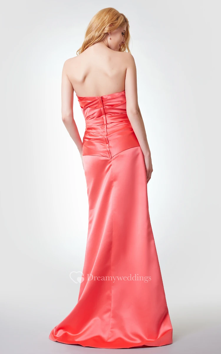 Sweetheart Ruched A-line Long Satin Dress With Flower