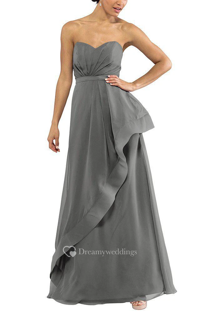 Sweetheart Ruched Asymmetric Long Bridesmaid Dress