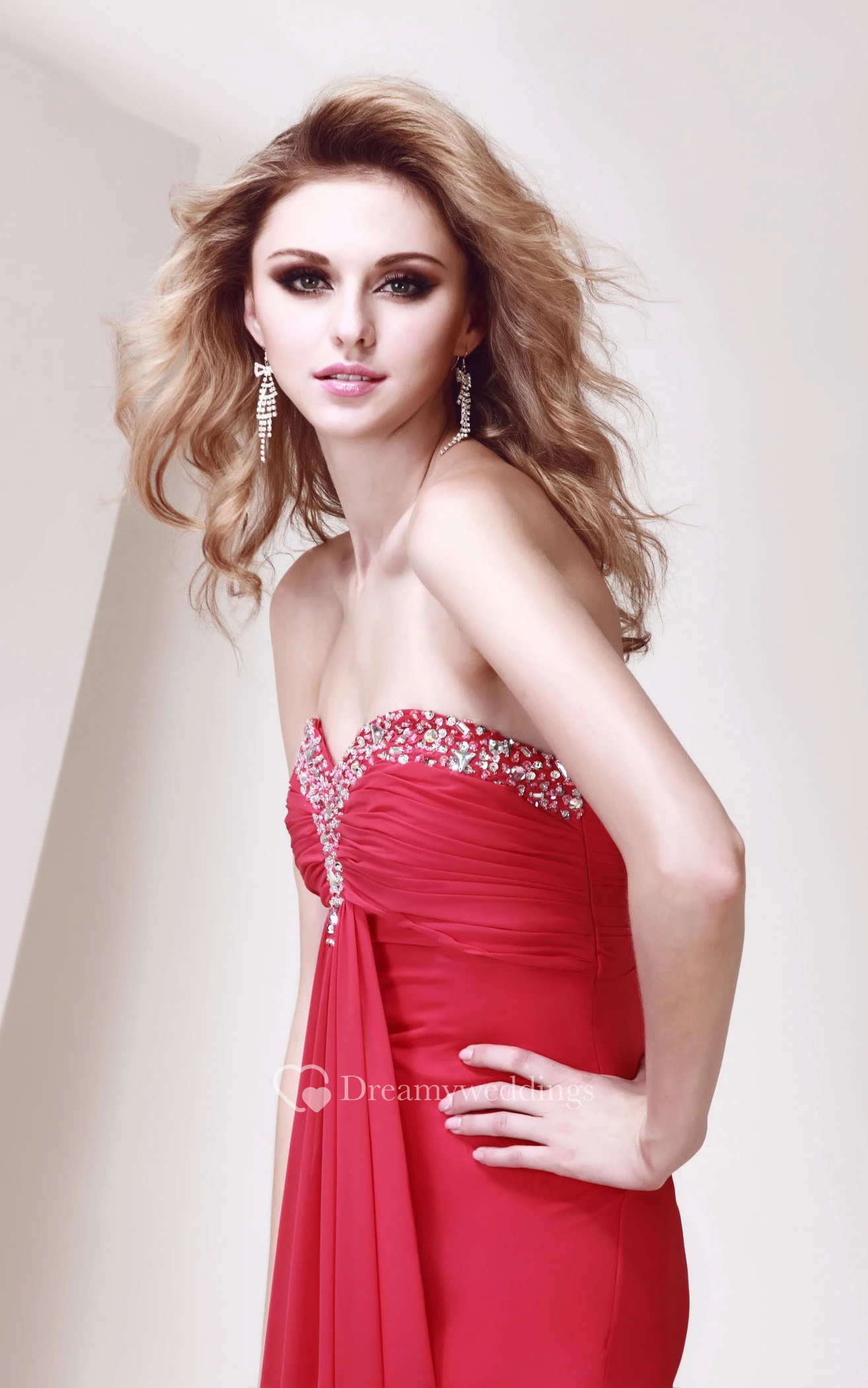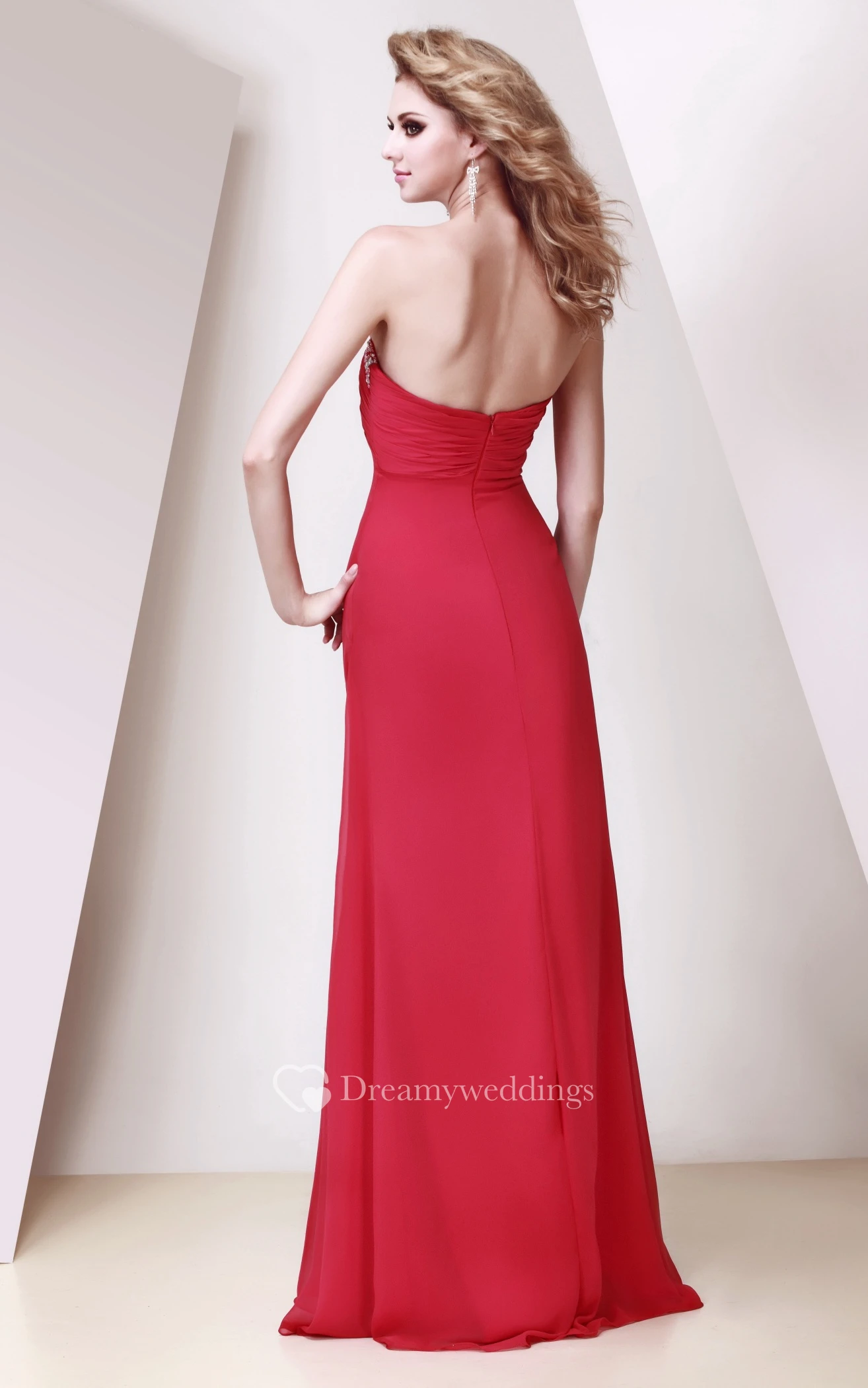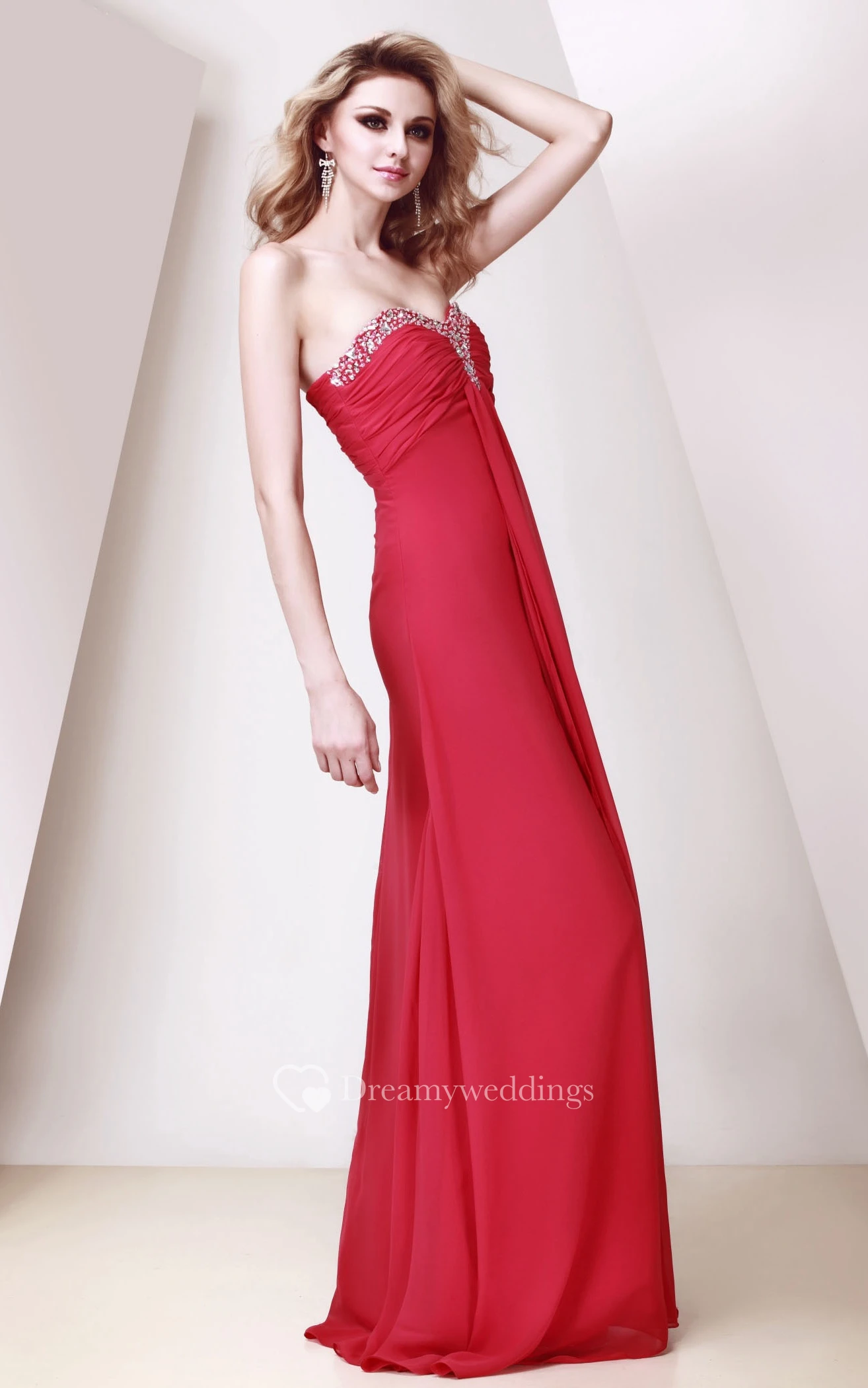 Sweetheart Ruched Chiffon Floor-Length Dress With Strass and Pleats