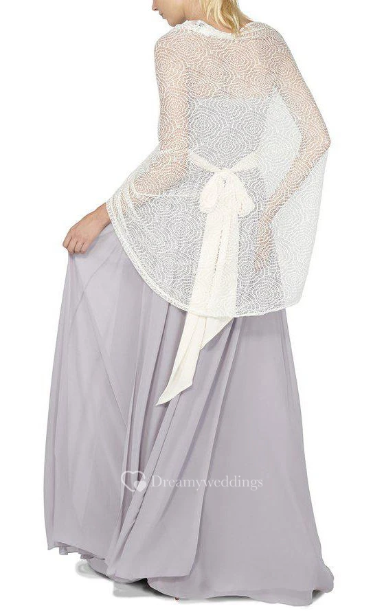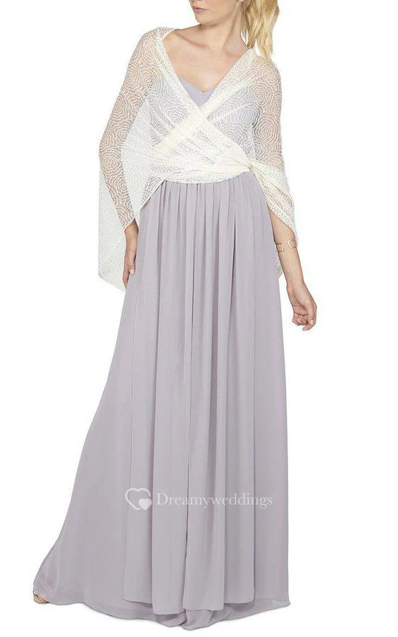 Sweetheart Ruched Floor-length Chiffon Dress with Lace Cape