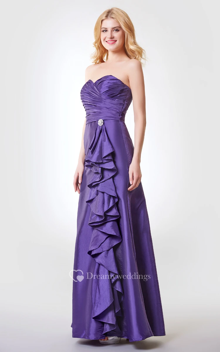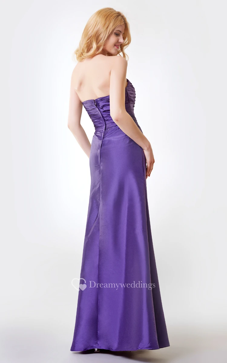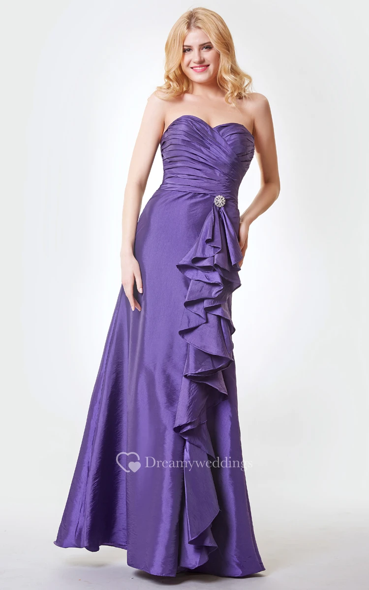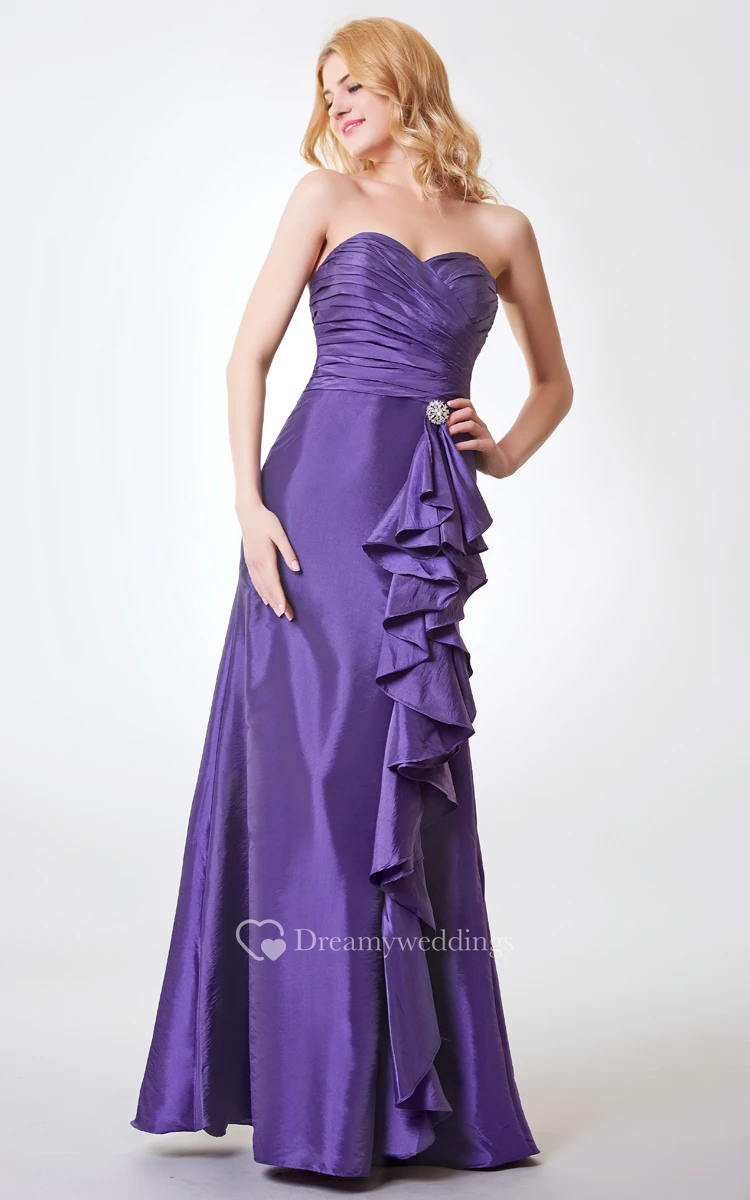 Sweetheart Ruched Long Taffeta Dress With Side Draping