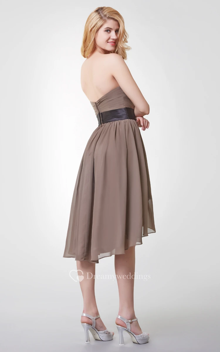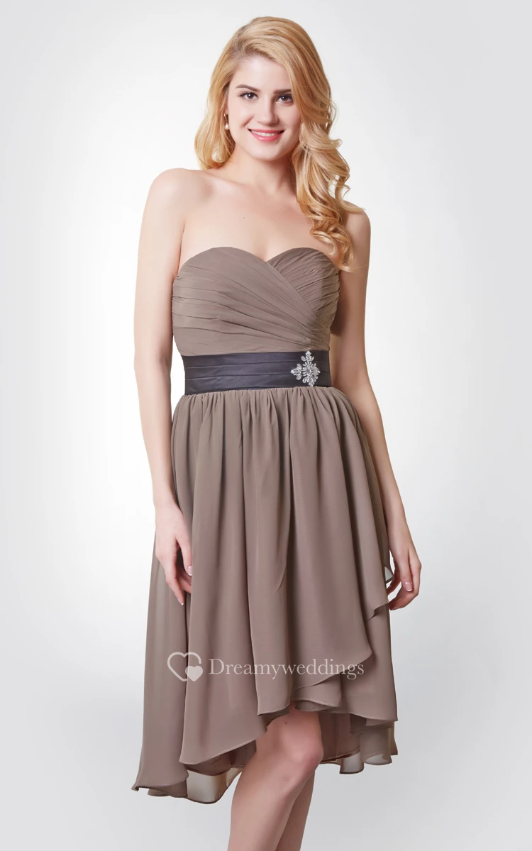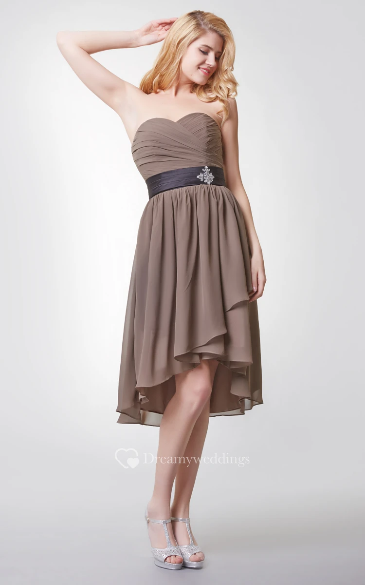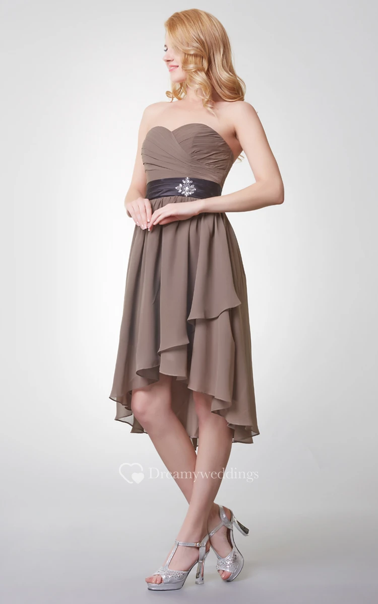 Sweetheart Ruched Tiered Short Chiffon Dress With Beaded Detailing