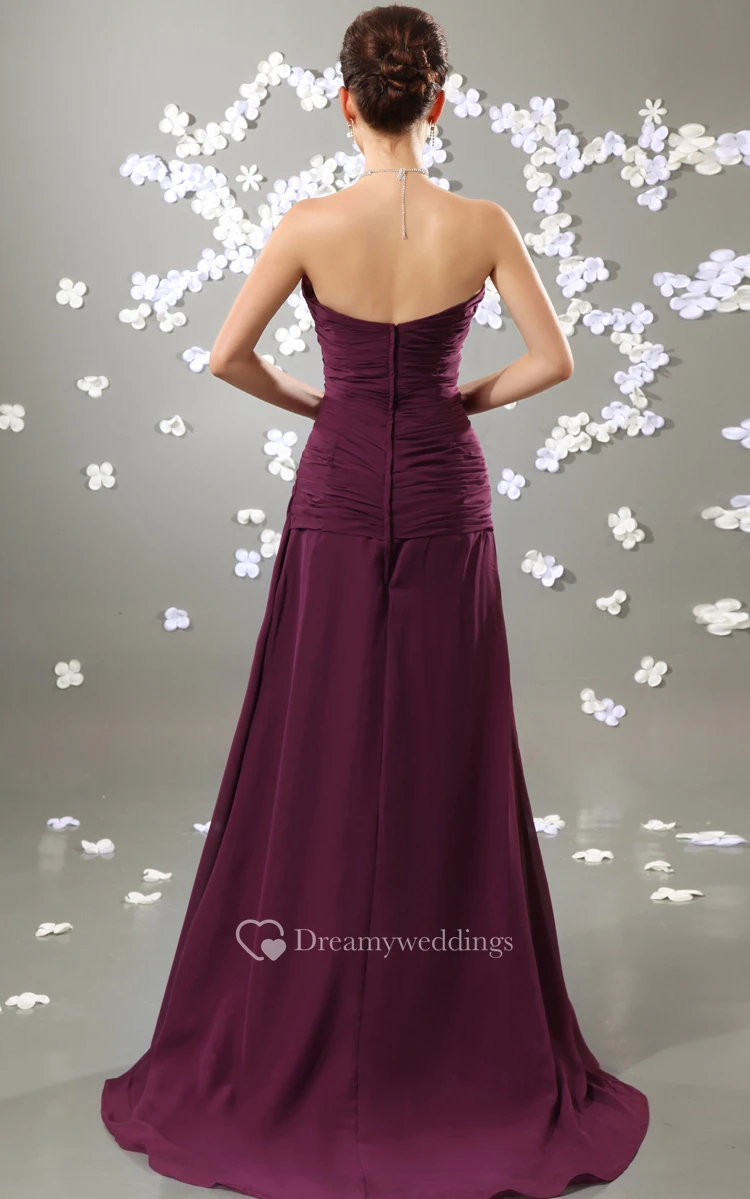 Sweetheart Ruching Dress With Front-Split and Beaded Broach