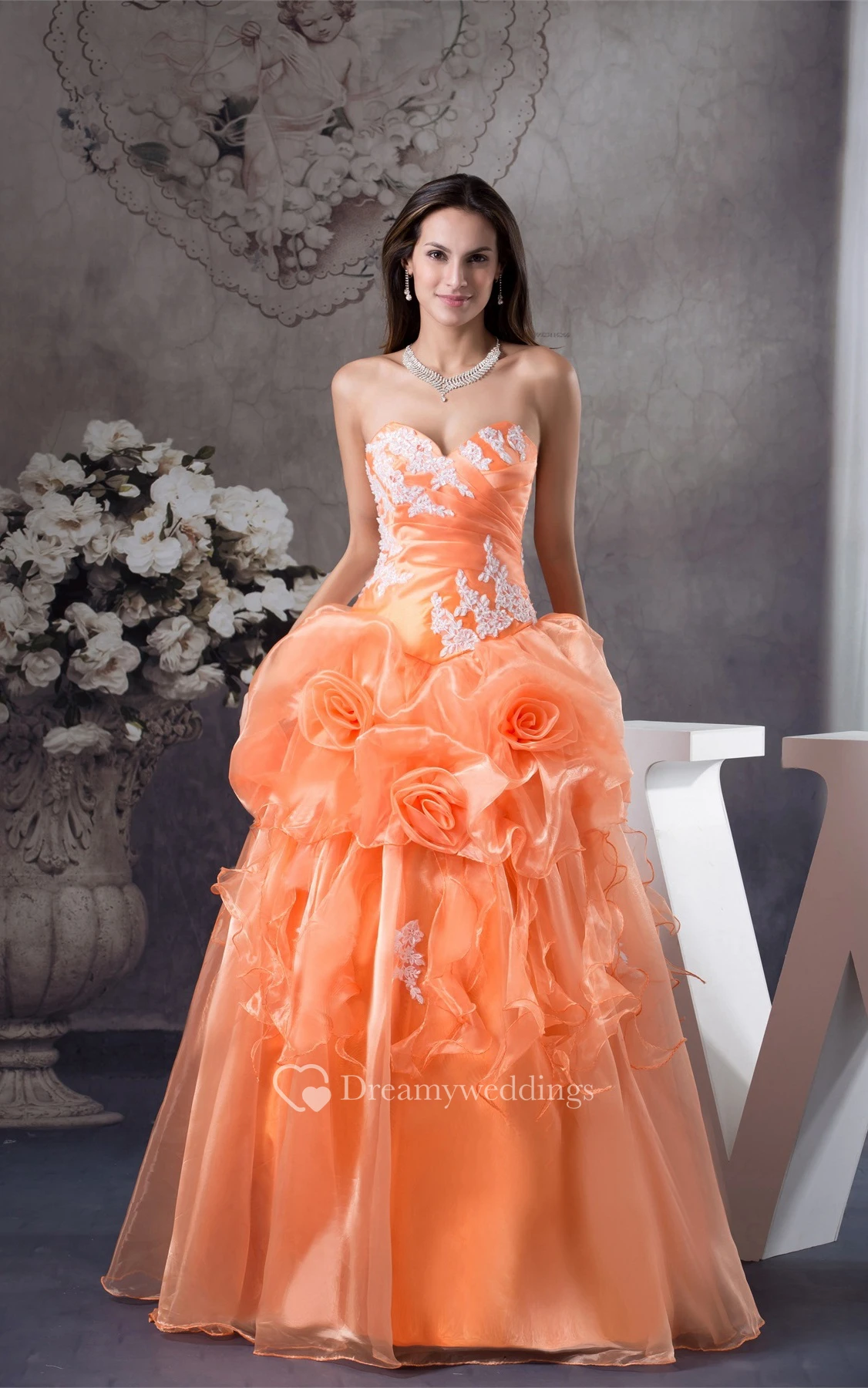 Sweetheart Ruffled Appliques and Ball-Gown With Flower