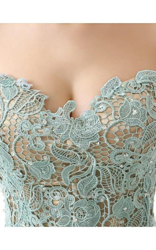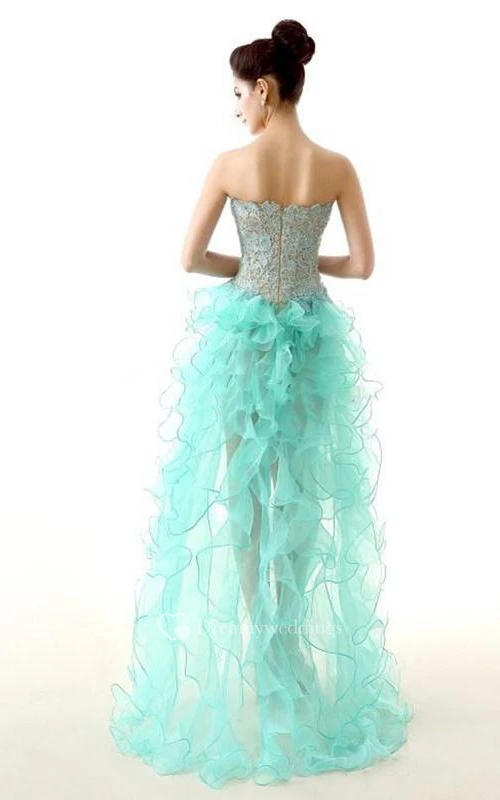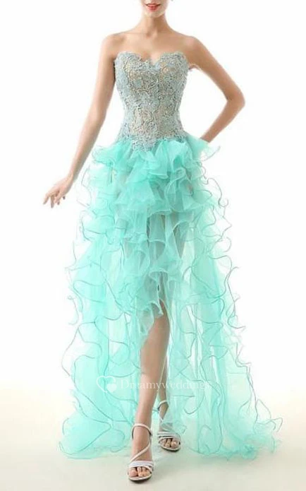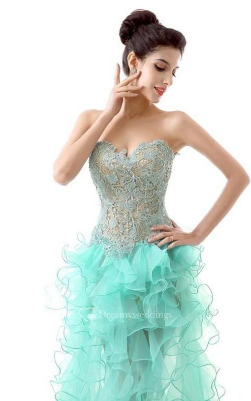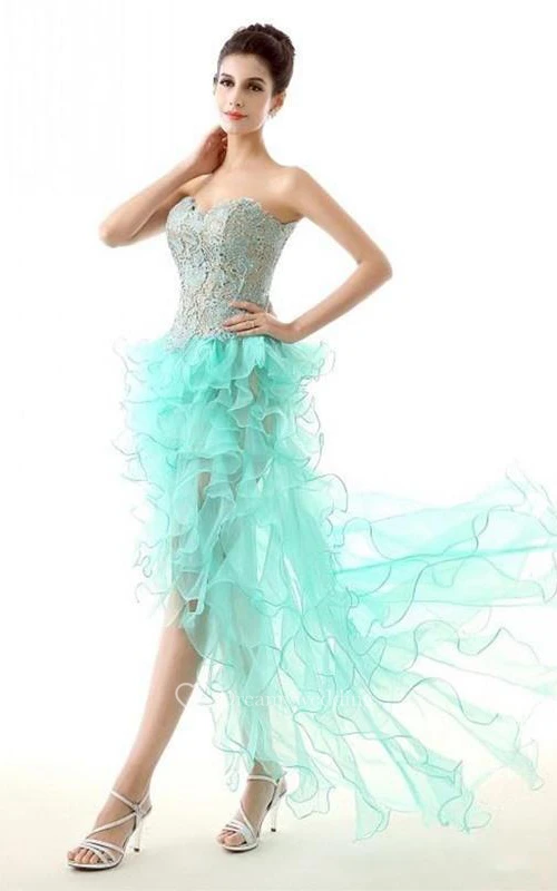 Sweetheart Ruffles Lace Beaded Asymmetrical Prom Dress