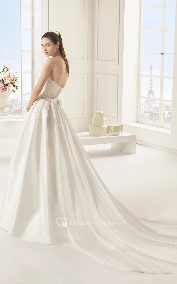 Sweetheart Satin Unique Ball Gown With Watteau Train