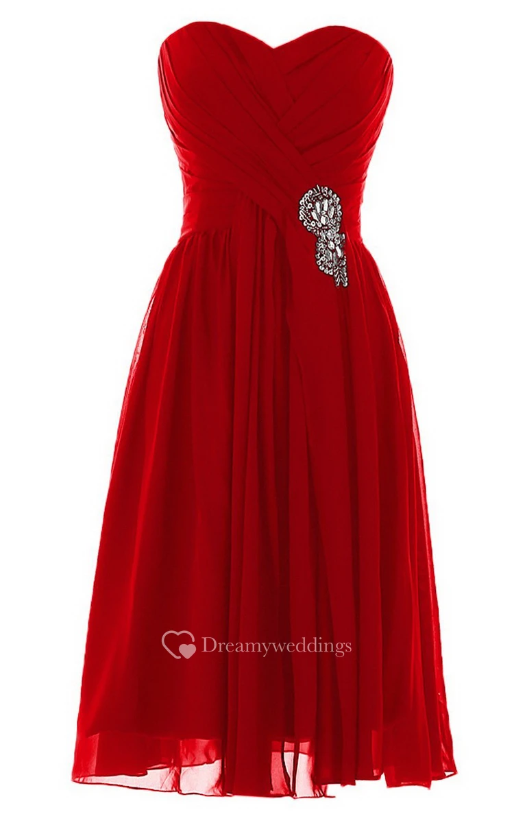 Sweetheart Short Chiffon Dress With Pleats and Beadings