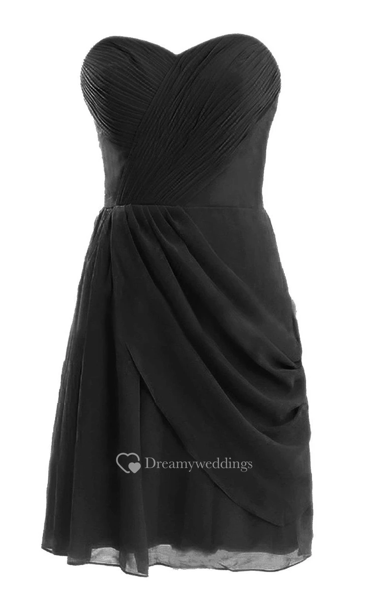 Sweetheart Short Chiffon Dress With Pleats