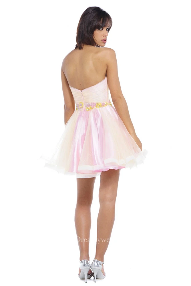 Sweetheart Short Jeweled Tulle Prom Dress With Criss Cross And V Back