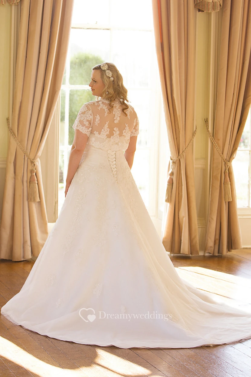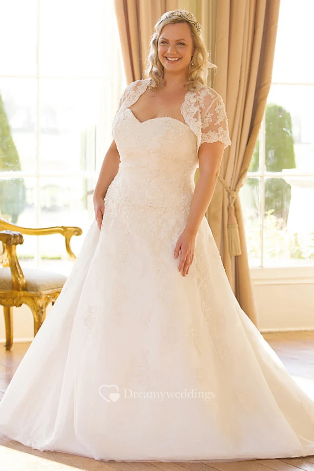 Sweetheart Short-Sleeve Lace Plus Size Wedding Dress With Illusion