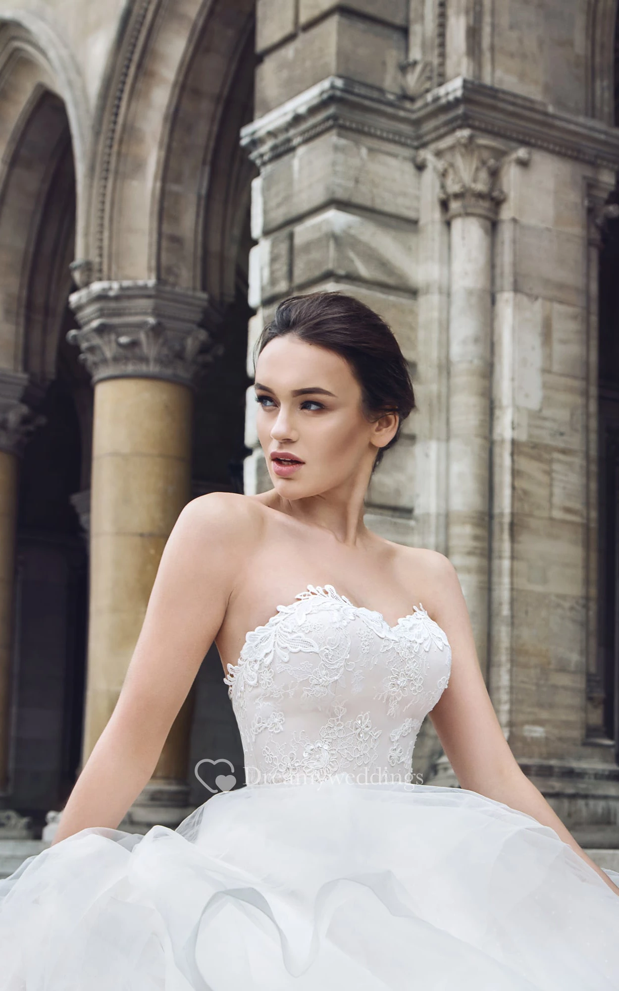 Sweetheart Sleeveless Appliques Cascading Ruffles Corset Back Dress