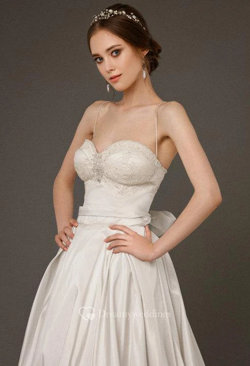 Sweetheart Spaghetti Straps A-Line Taffeta Gown With Open Back