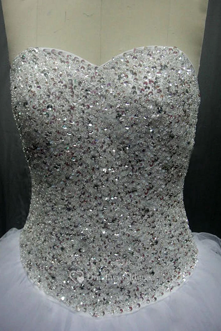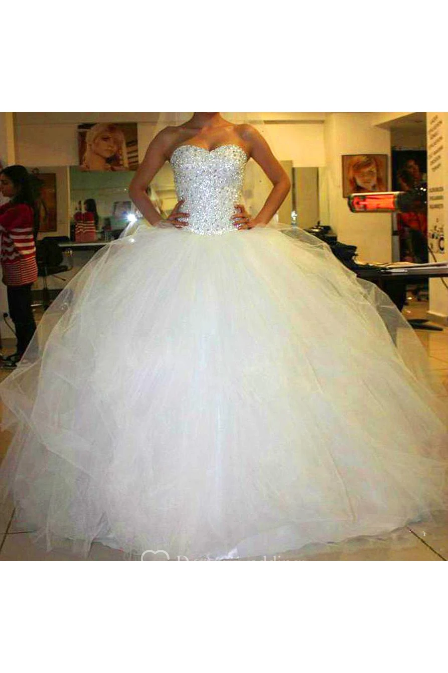 Sweetheart Tulle Beading Crystal Diamond Strapless A-Line Wedding Dresses