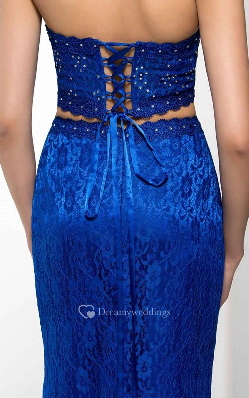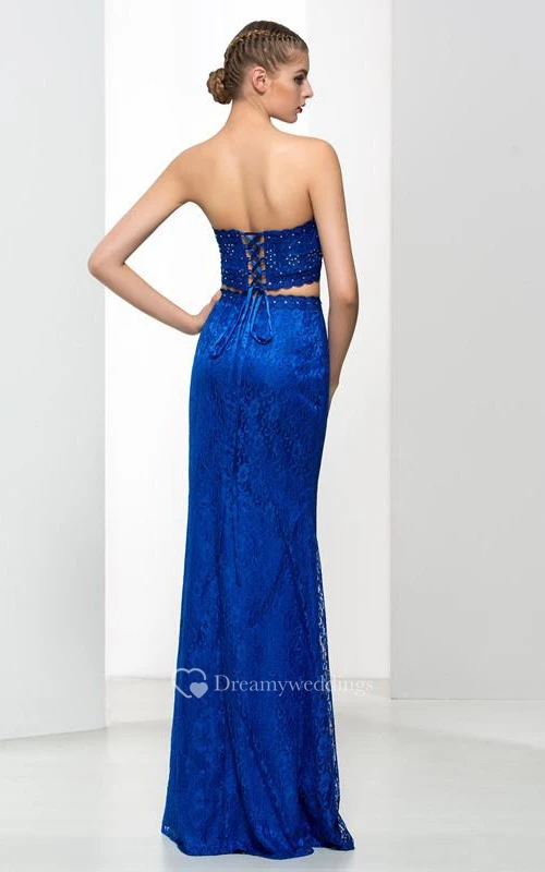 Sweetheart Two Pieces Beading Split-Front Lace Prom Dress