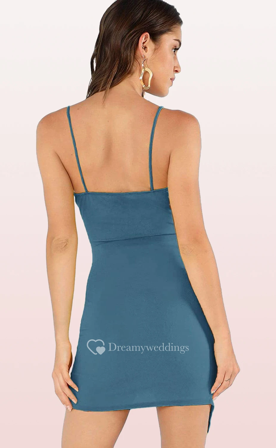 Taffeta Mini Bodycon Sleeveless Simple Cocktail Dress with Ruffles