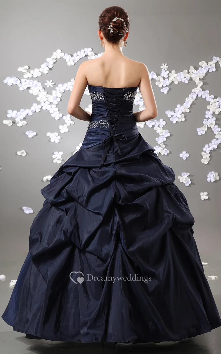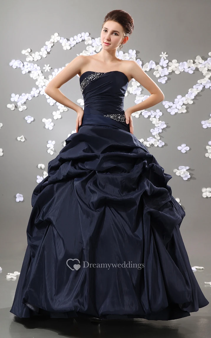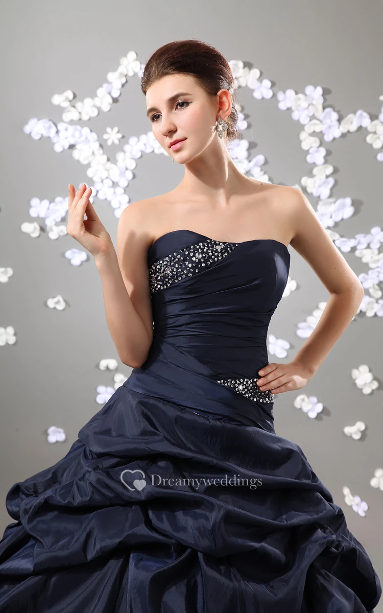 Taffeta Strapless Pick-Up Ruffled Ball Gown With Beading
