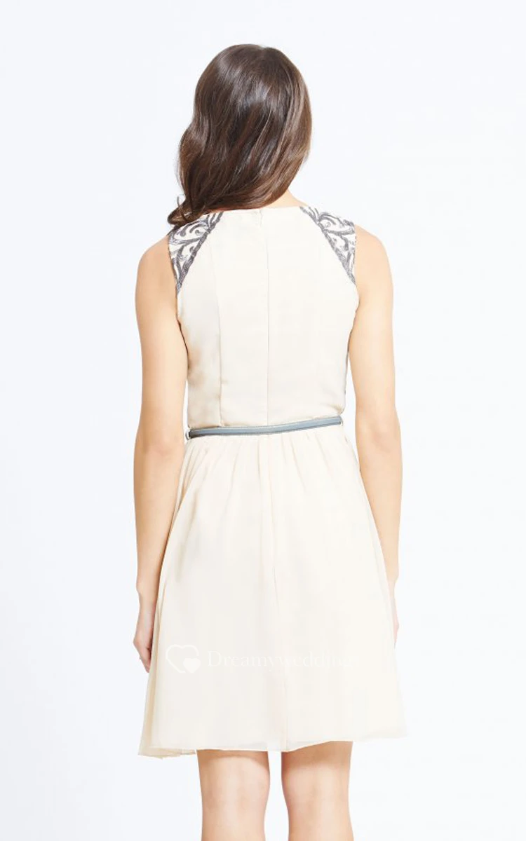 Tank Cool Short Dress With Belt And Embroidery