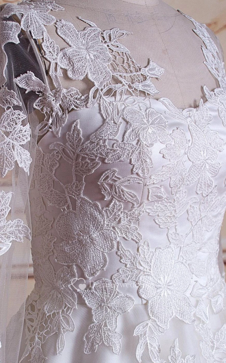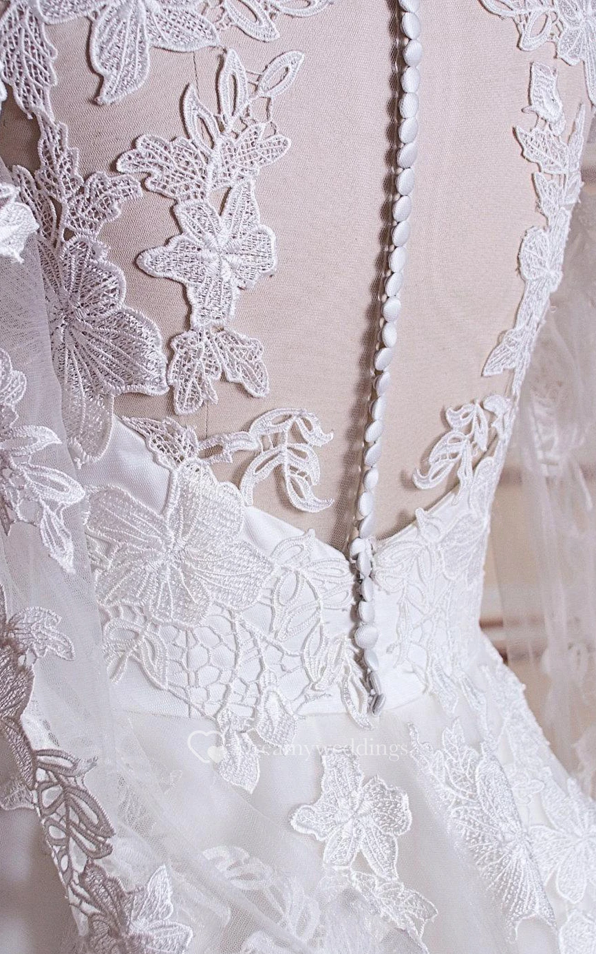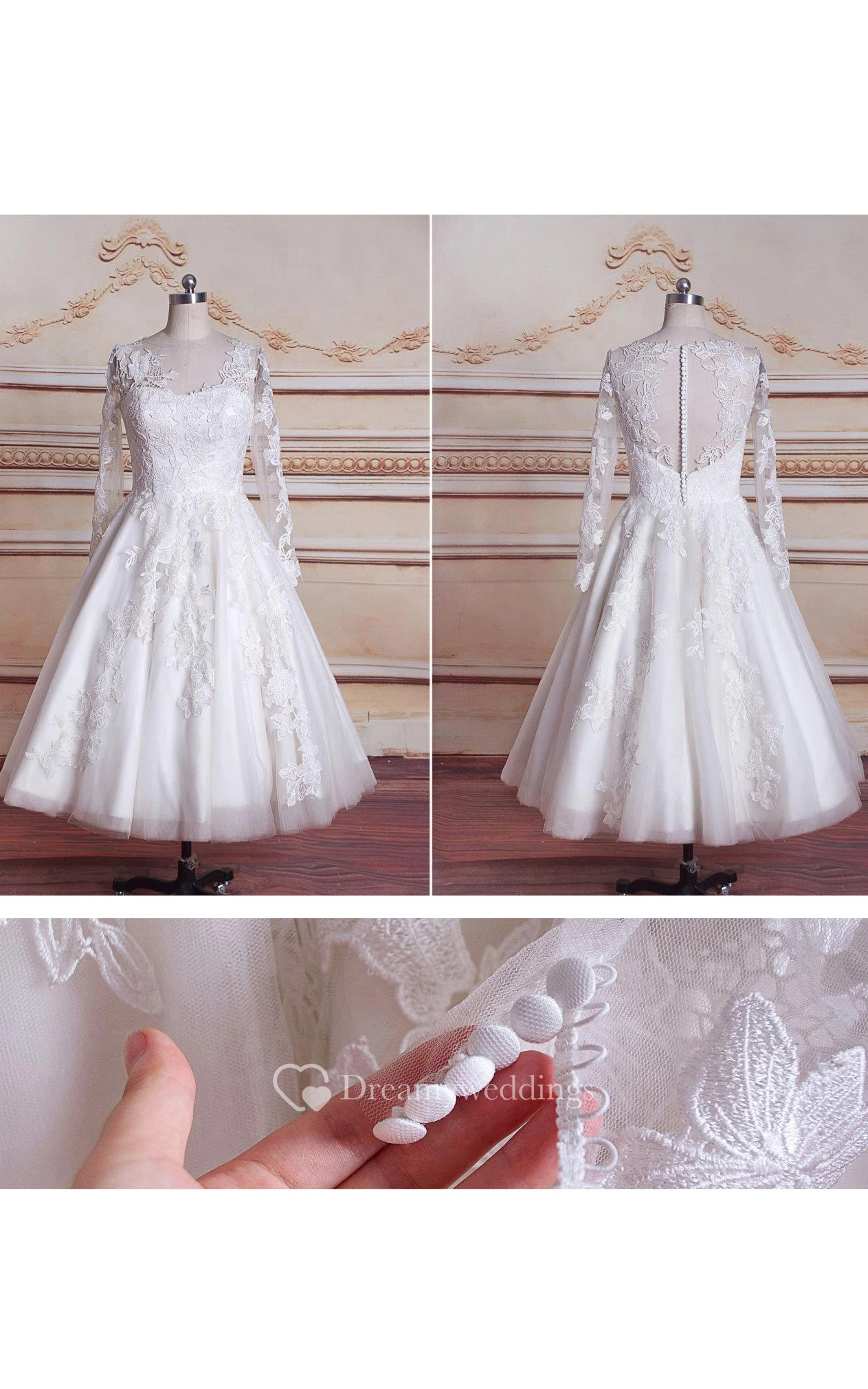 Tea-lengnth Long Sleeve Lace Dress With Button Zipper
