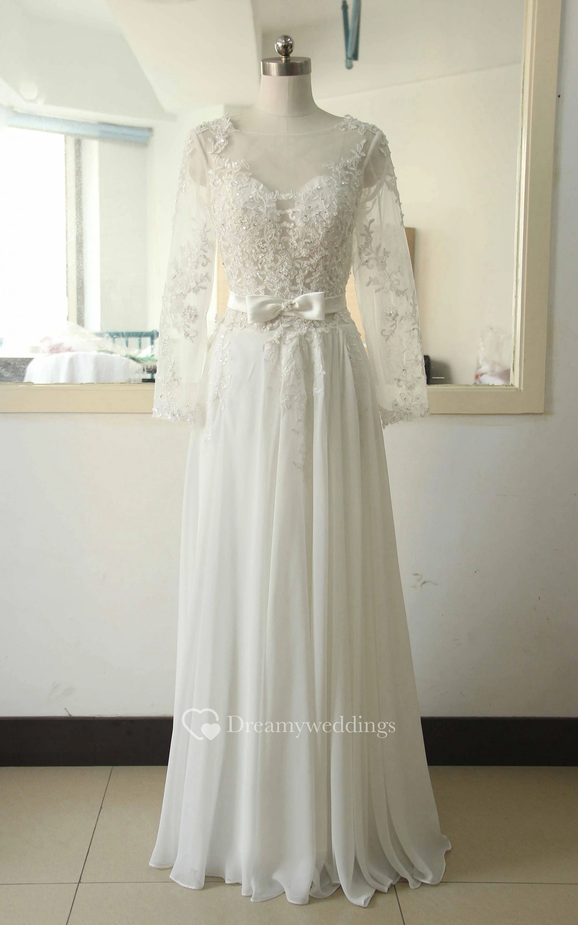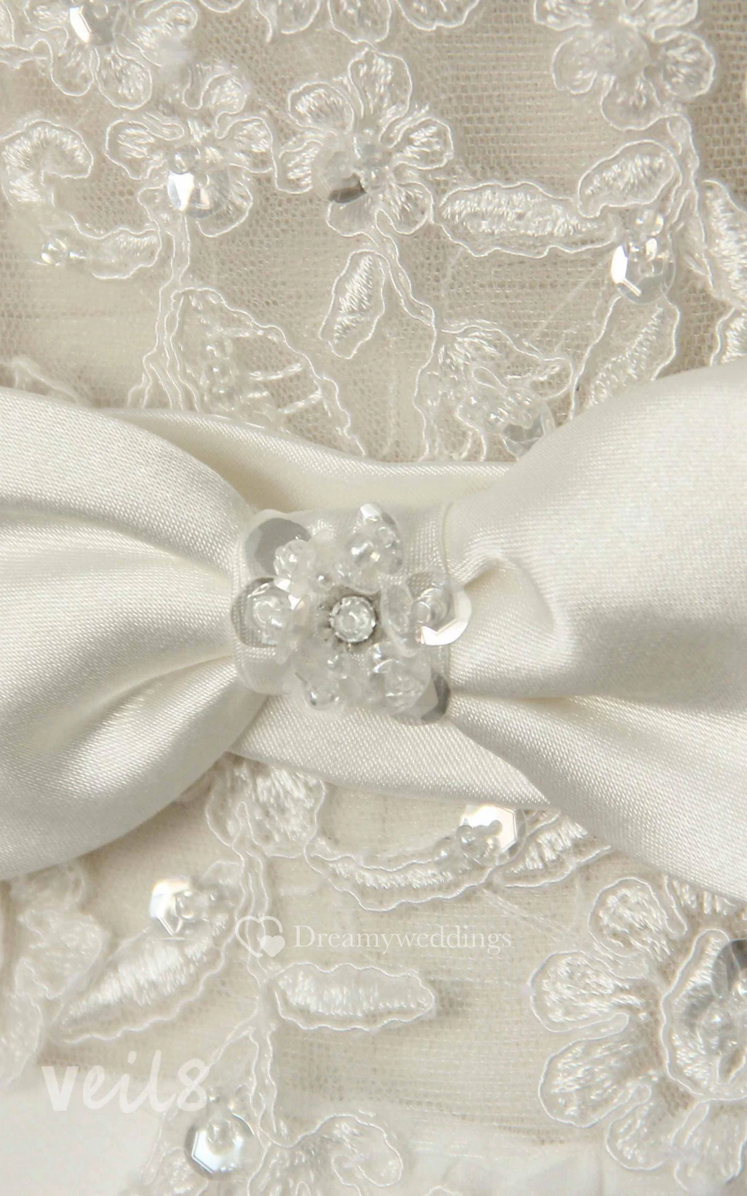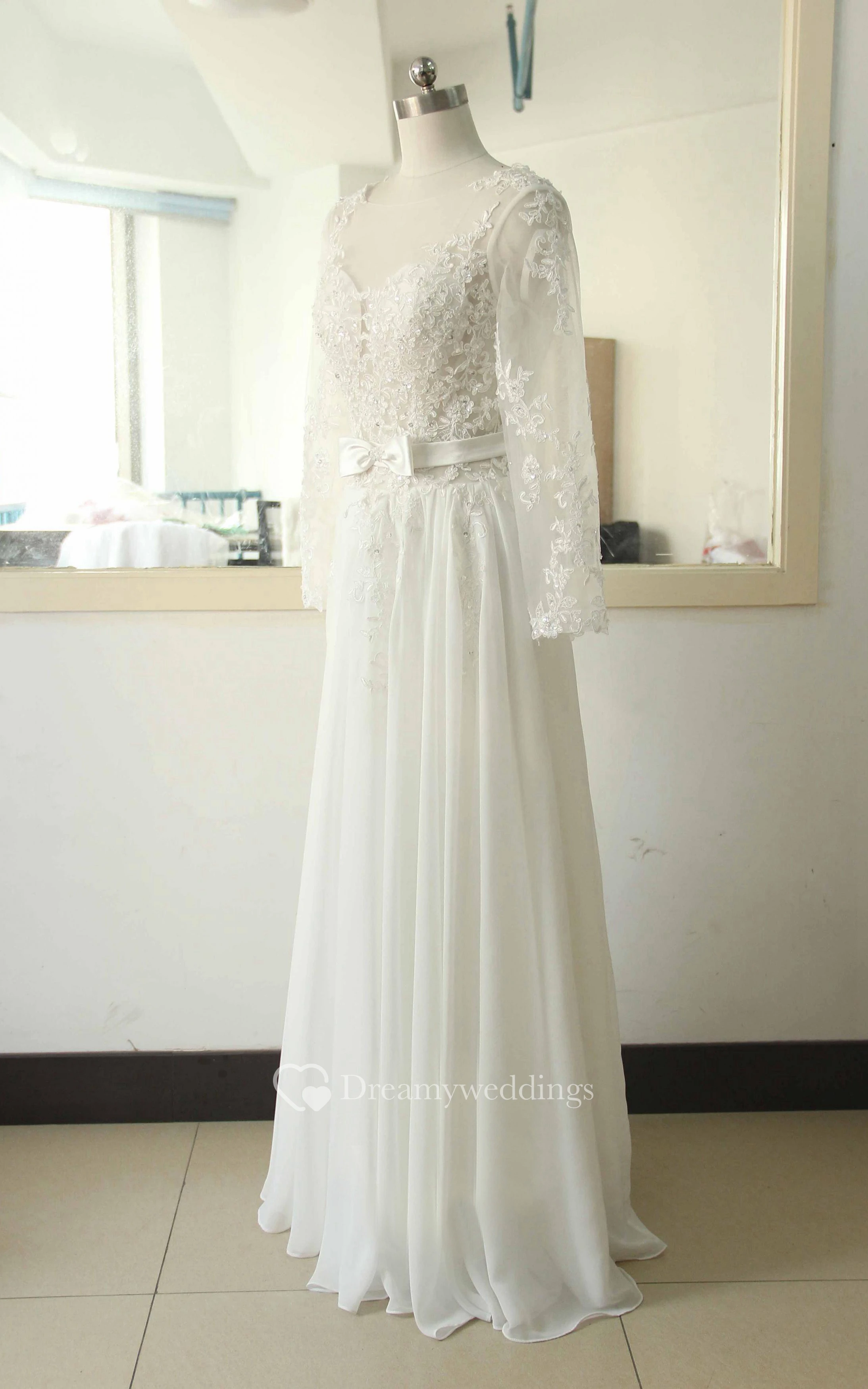 Tea-Length Long Sleeve Flower Backless Zipper Corset Back Chiffon Tulle Lace Satin Dress