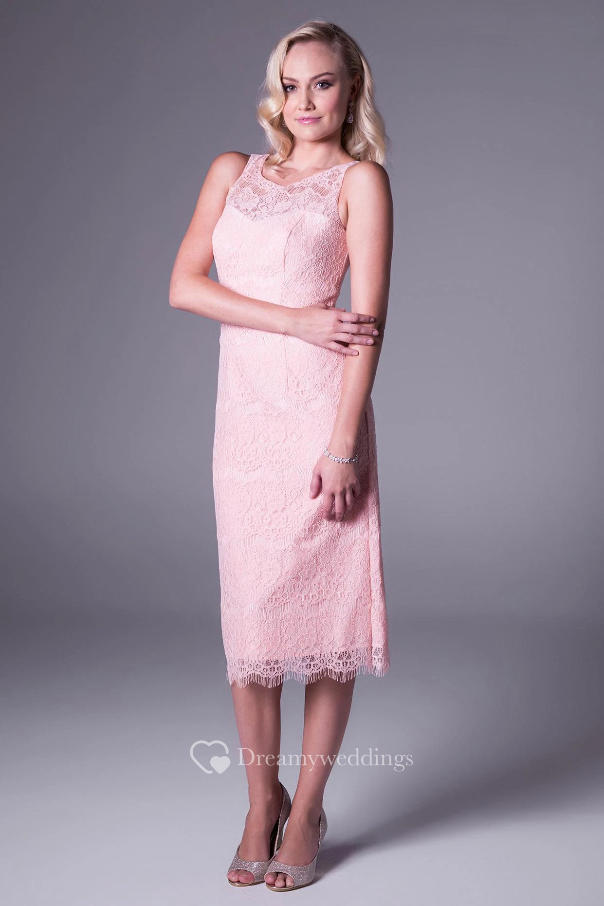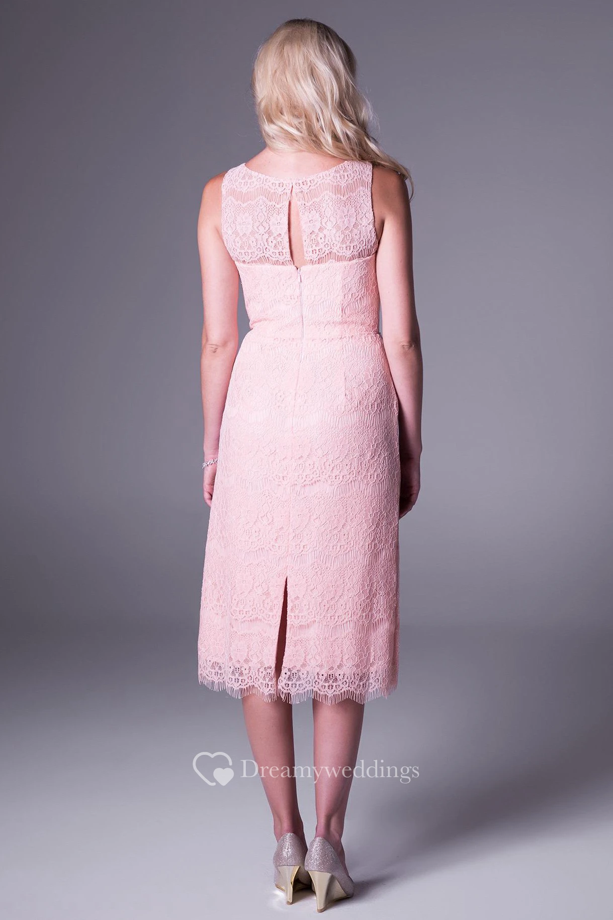 Tea-Length Sheath Splitted Sleeveless Scoop Neck Lace Prom Dress