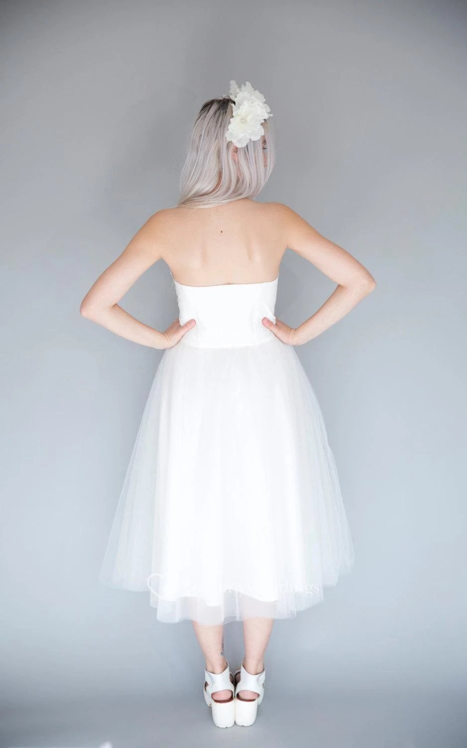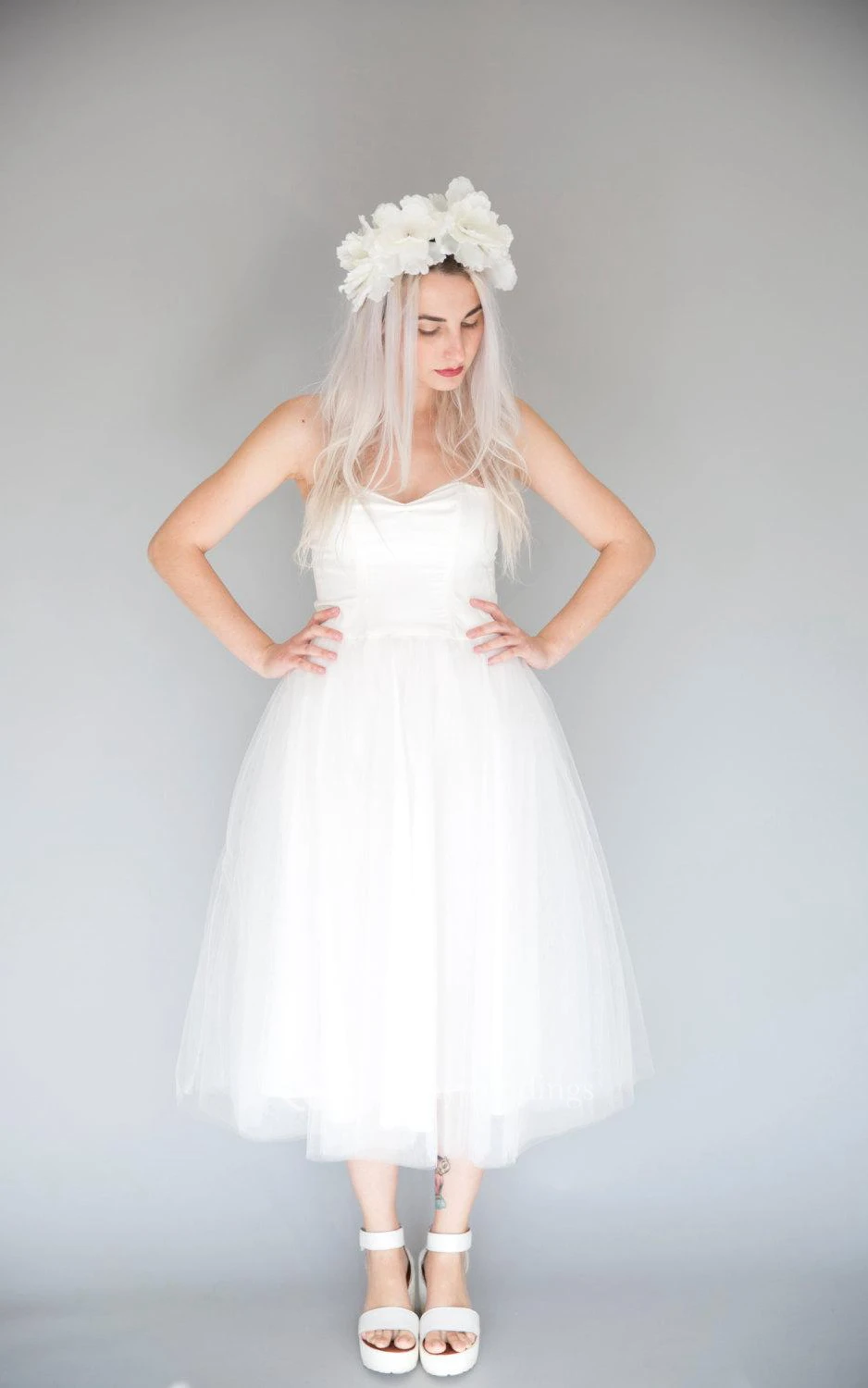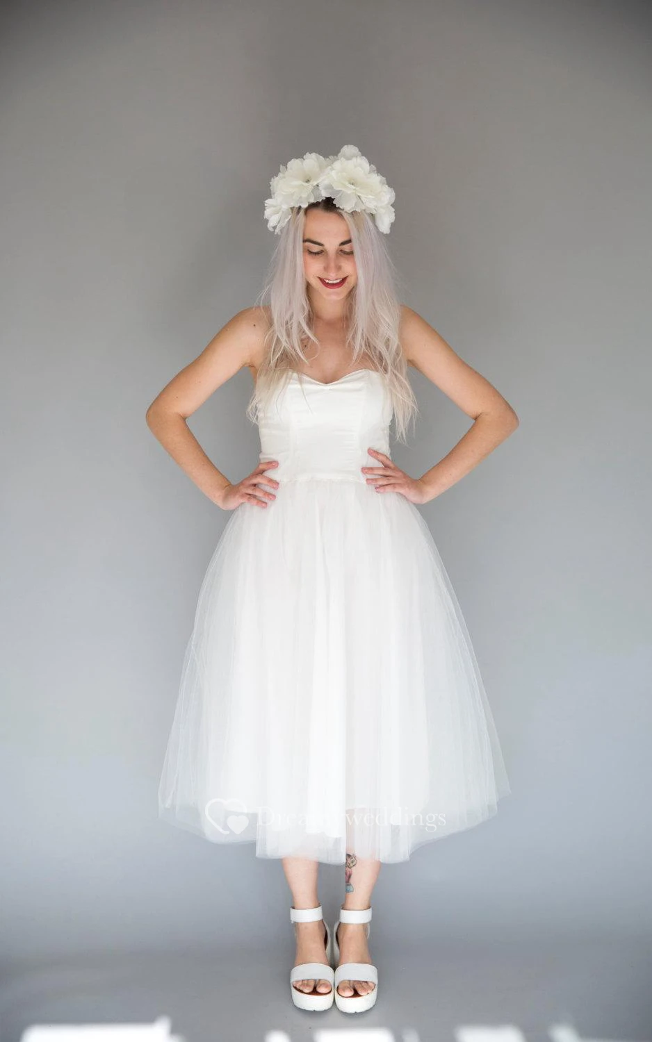 Tea Length Sweetheart A-Line Tulle Dress With Pleats
