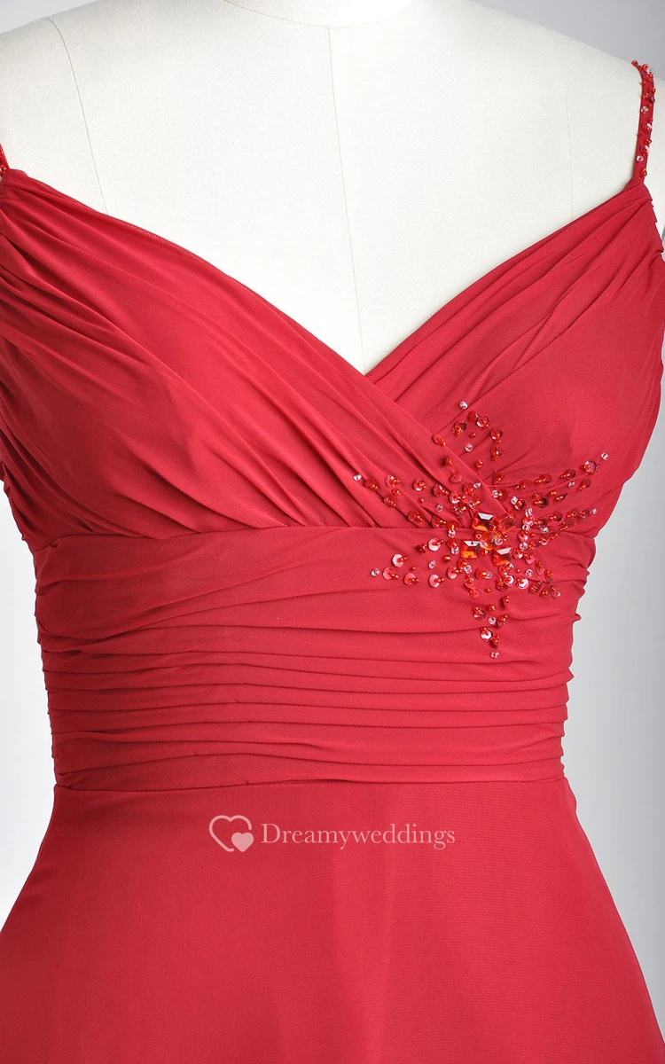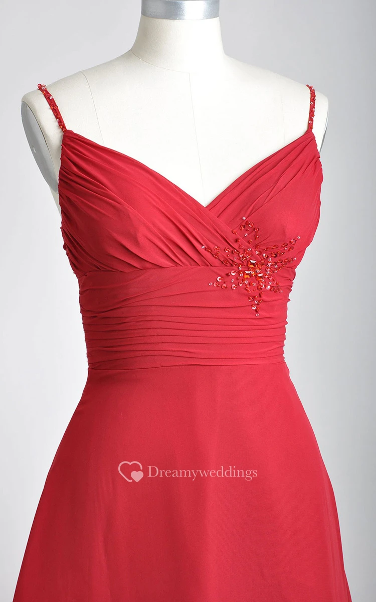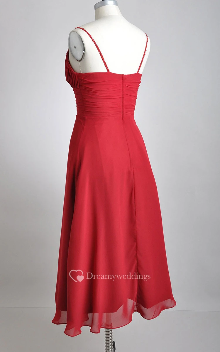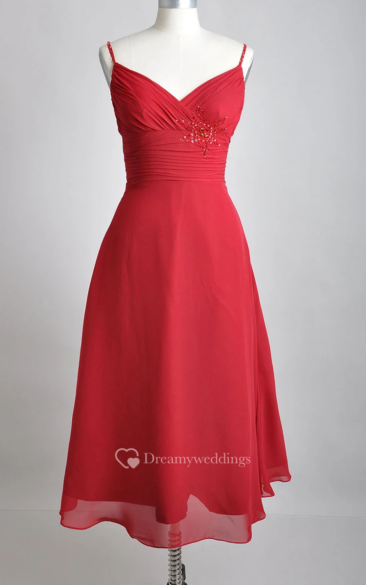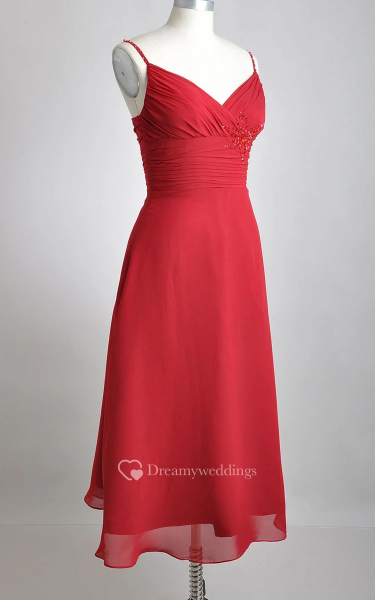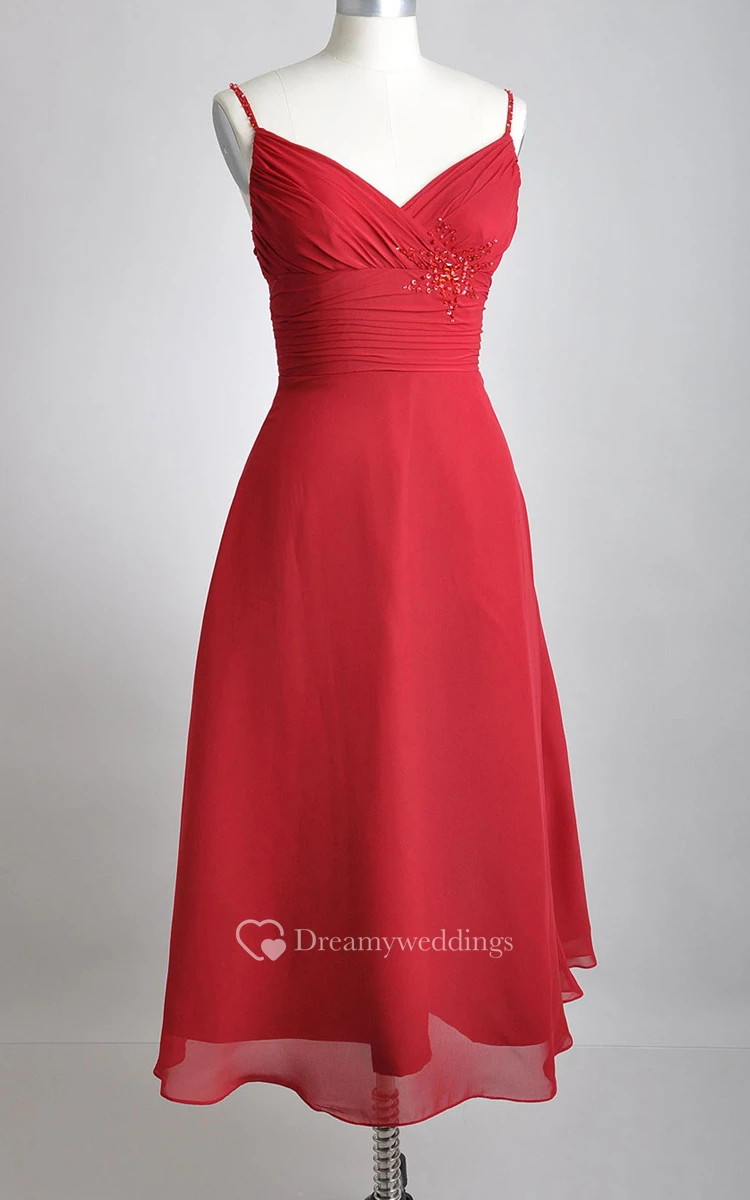 Tea-length V-Neckline A-line Chiffon Bridesmaid Dress With Spaghette Straps