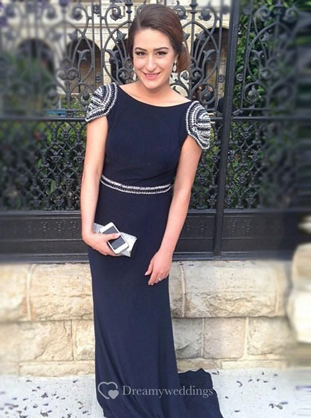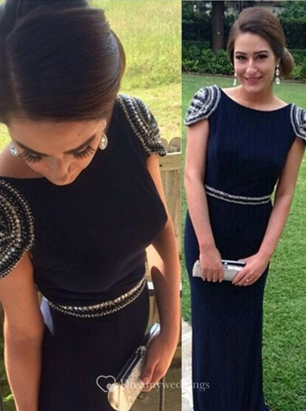 Timeless Cap Sleeveless Mermaid Prom Dresses Long With Beadings