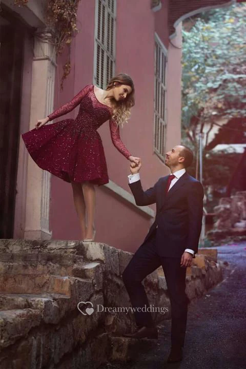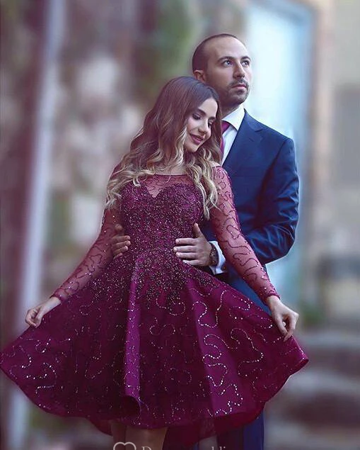 Timeless Long Sleeve Beadings Sequins Short Prom Dress A-Line on Sale