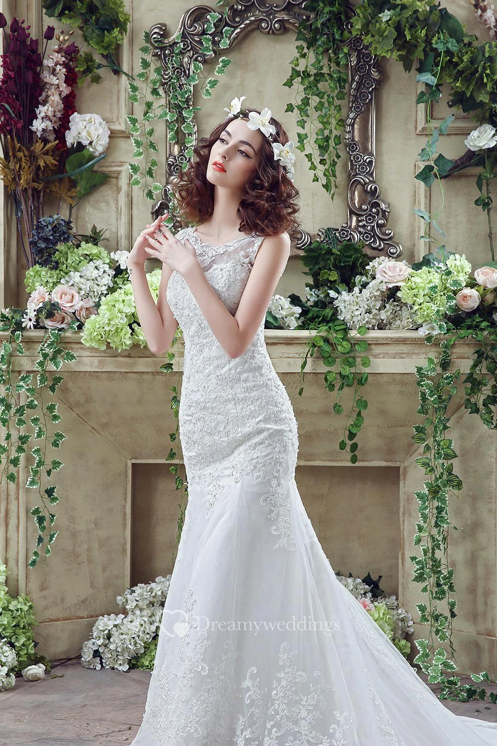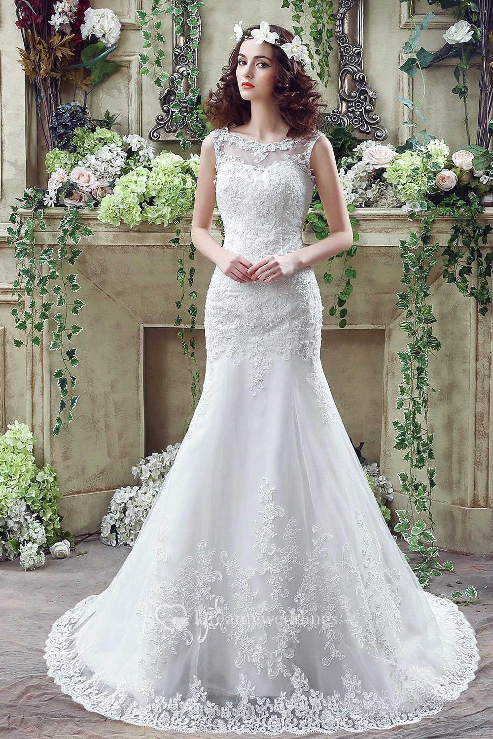 Timeless Mermaid Lace Wedding Dress Zipper Button Back Sweep Train