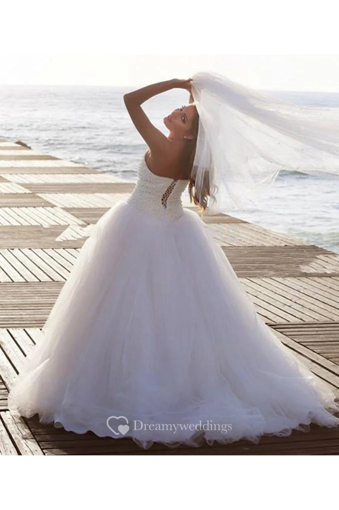 Timeless Tulle Beadings White Wedding Dress Plus Size Lace-up Sweetheart