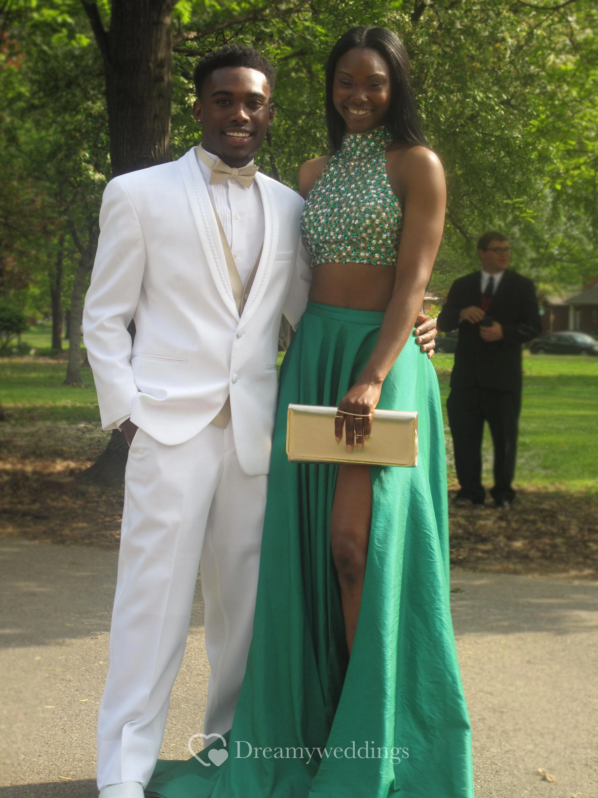 Timeless Two Pieces Crystal Prom Dresses Front Split Long Formal Wear