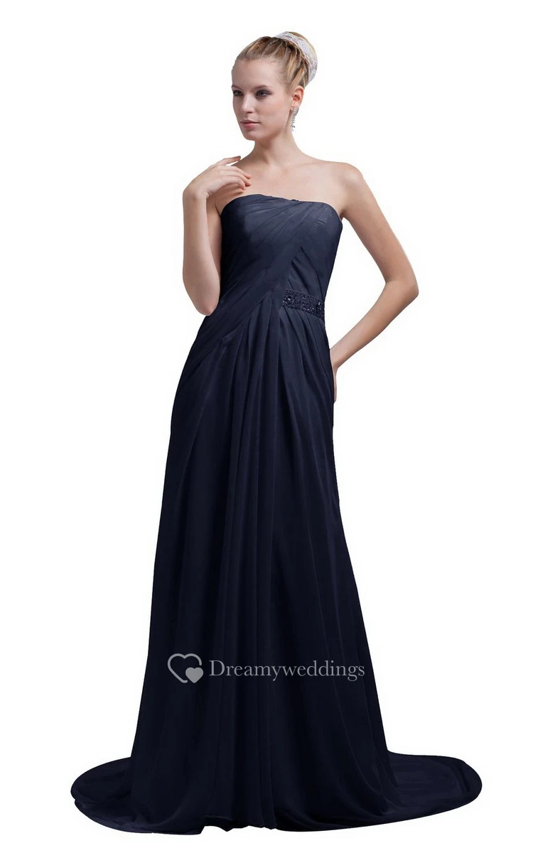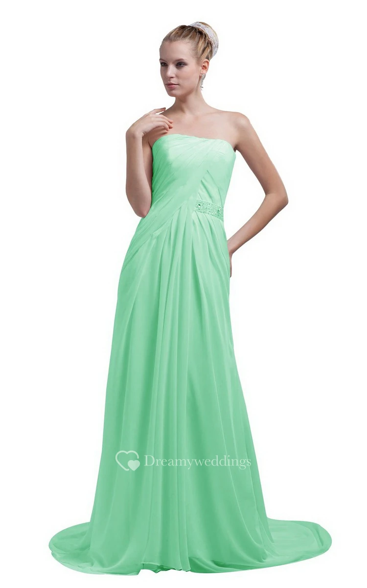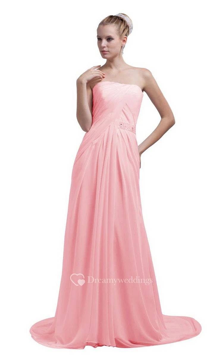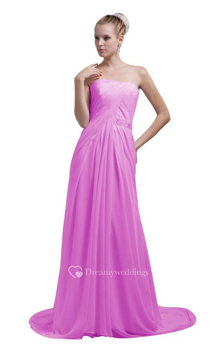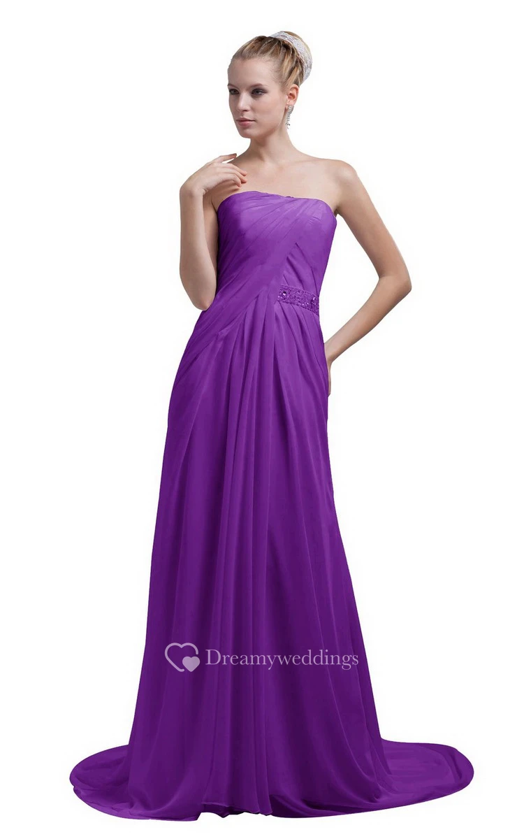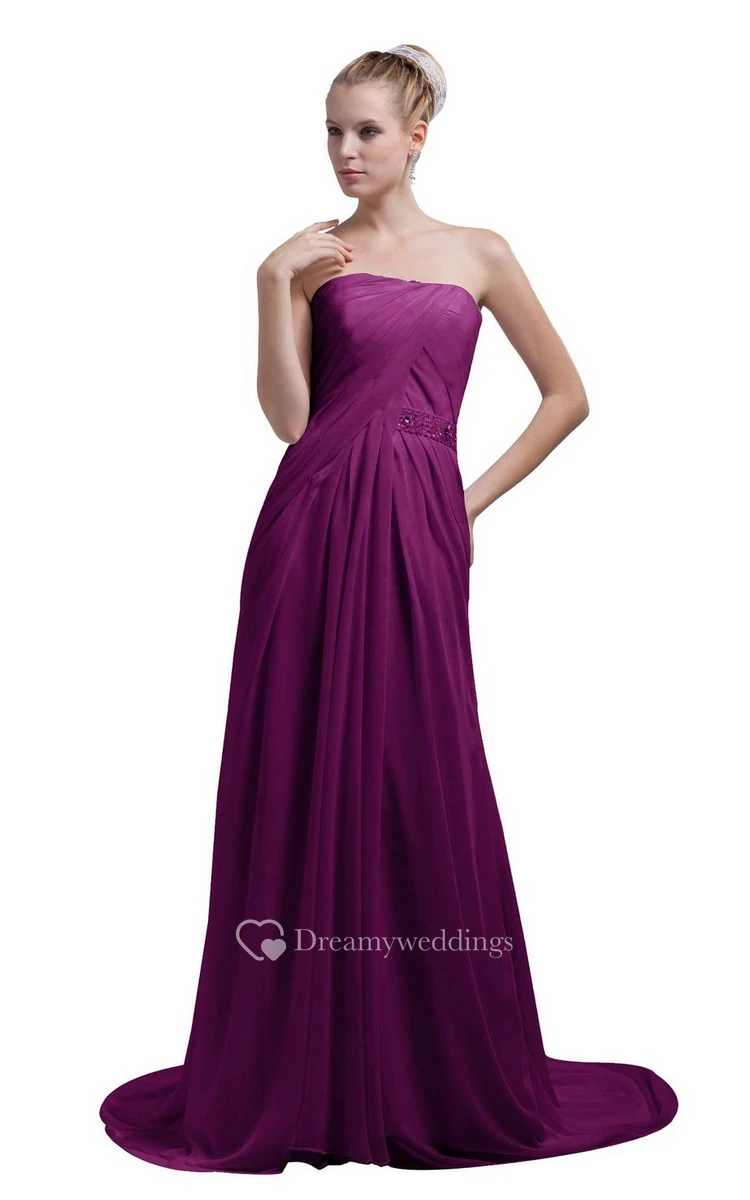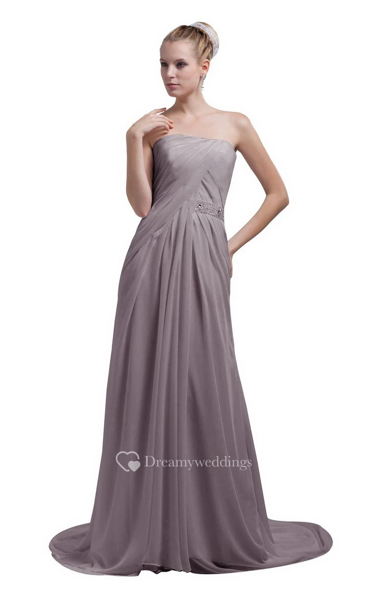 Train Strapless Chiffon A-line Gown With Beaded Band