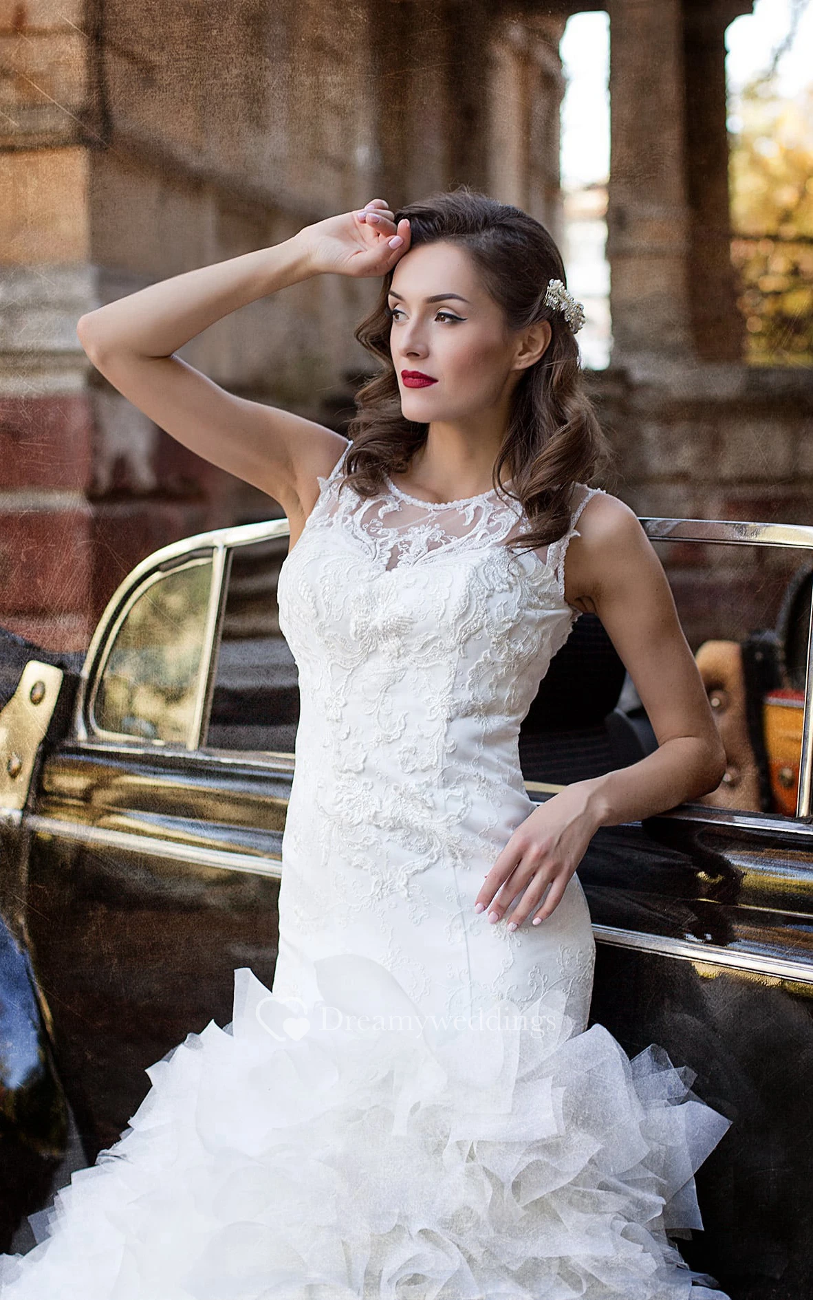 Trumpet Floor-Length Scoop Sleeveless Illusion Tulle Dress With Ruffles And Appliques