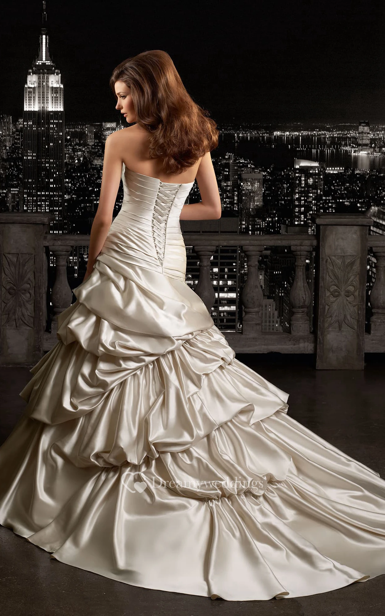 Trumpet Floor-Length Strapless Sleeveless Corset-Back Satin Dress With Pick Up And Beading