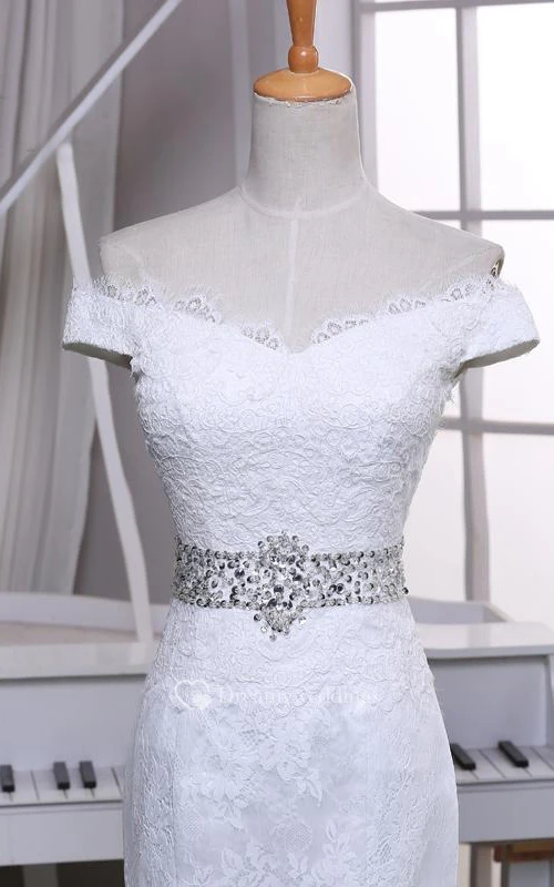 Trumpet Maxi Off-The-Shoulder One-Shoulder V-Neck Cap Beading Corset Back Lace Satin Dress