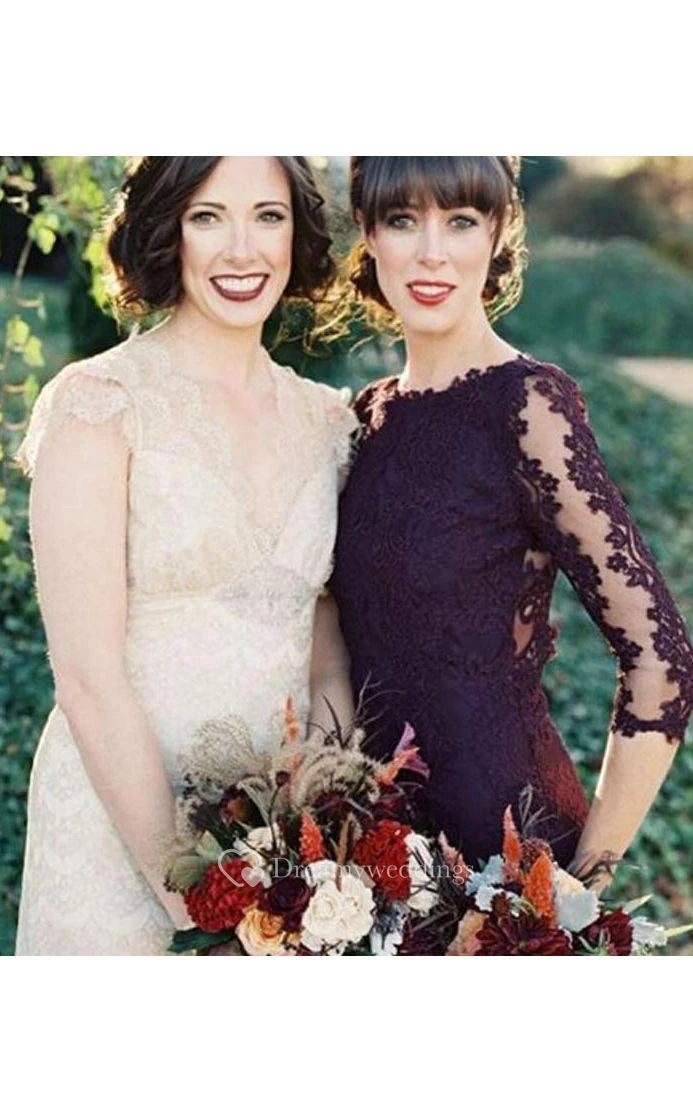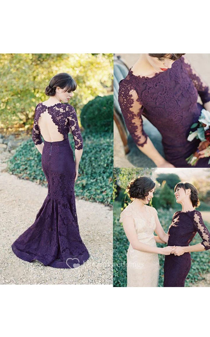 Trumpet Maxi Scoop 3-4 Sleeve Backless Lace Satin Dress