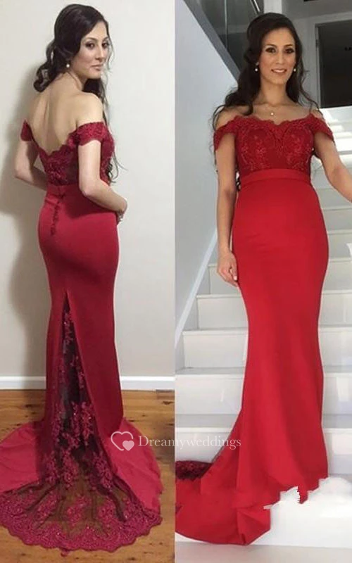 Trumpet Off-the-shoulder Lace Satin Dress with V-back