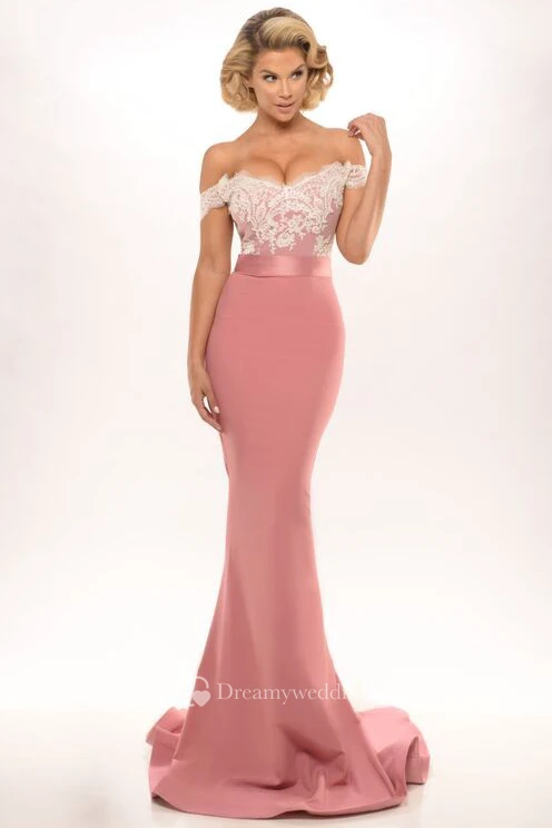 Trumpet Off-The-Shoulder Long Appliqued Jersey Prom Dress