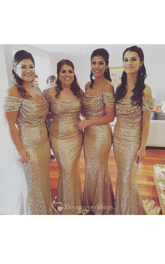 Trumpet Off-the-shoulder Ruched Sequined Dress