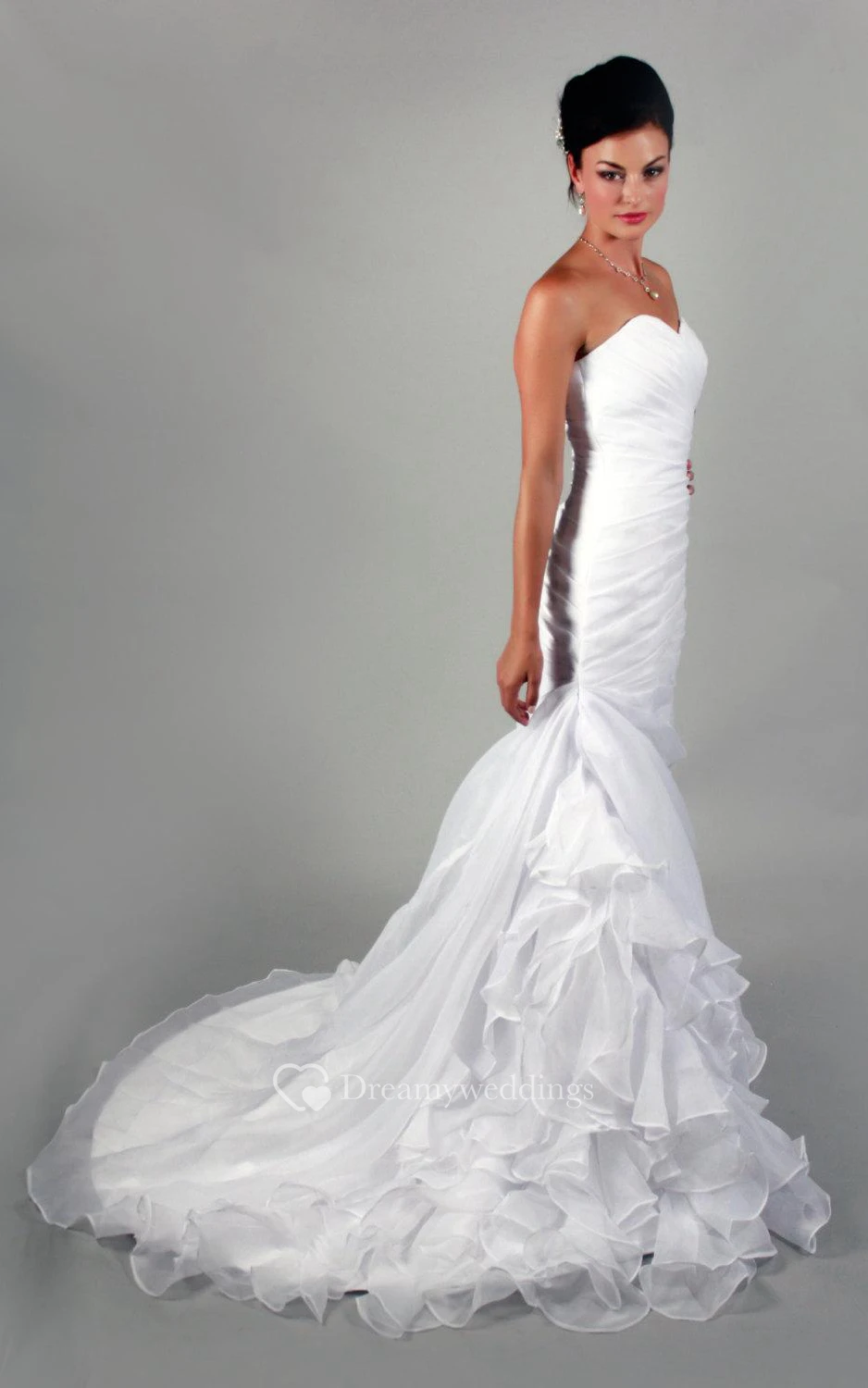 Trumpet Sweetheart Sleeveless Chiffon Dress With Asymmetrical Ruching and Cascading Ruffles