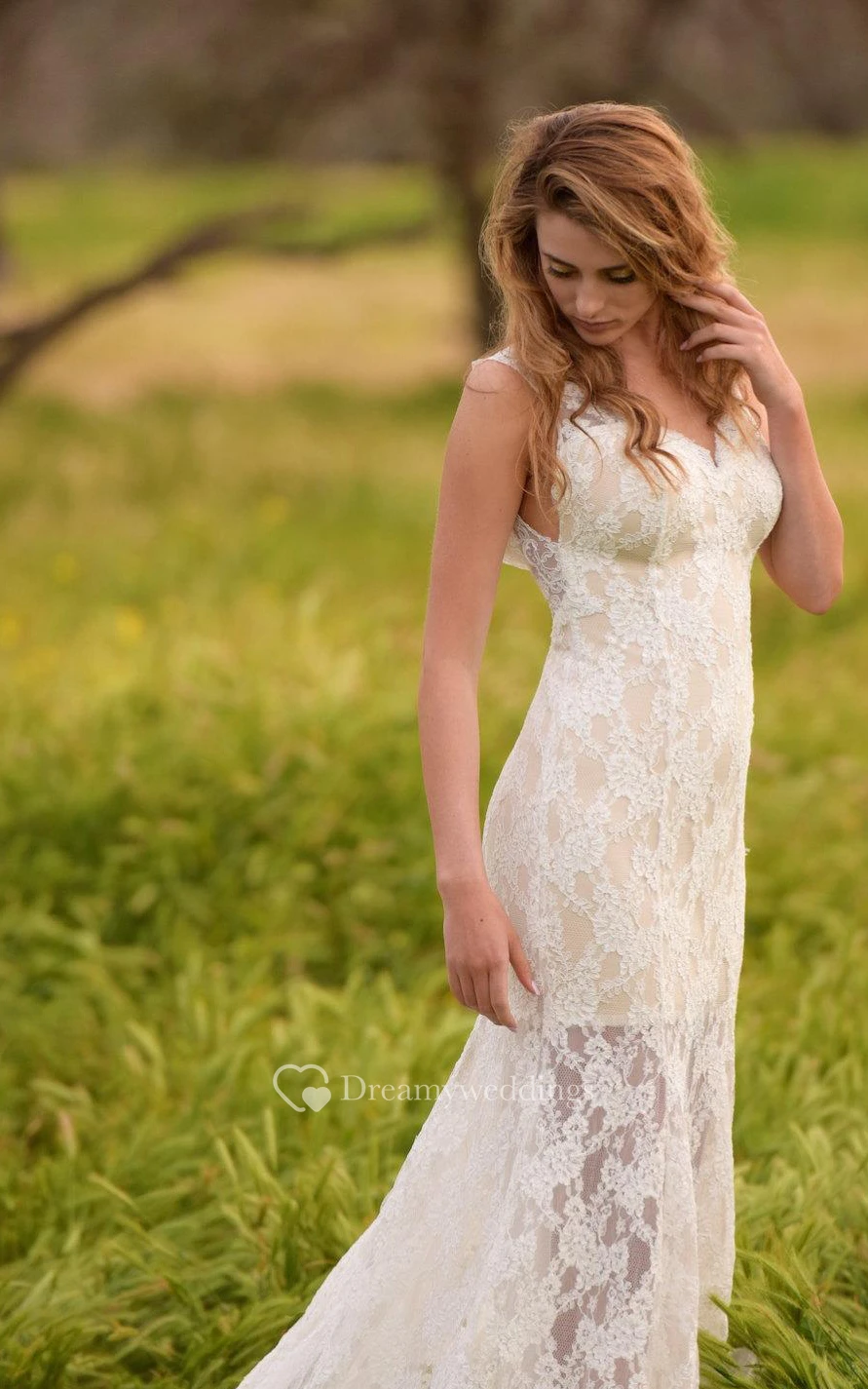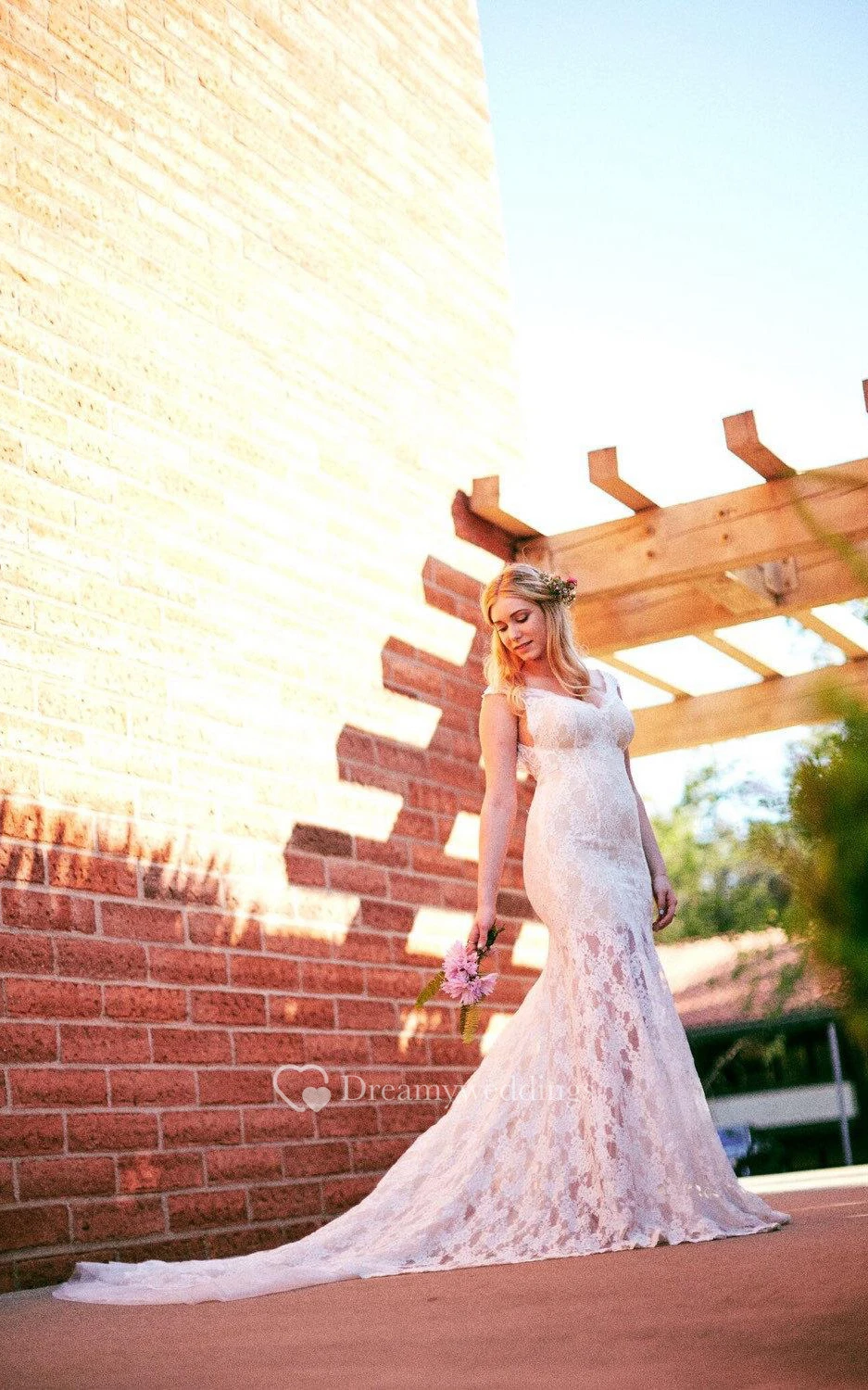 Trumpet Wedding Beach Wedding Low Back Wedding Lace Ivory Beach Dress