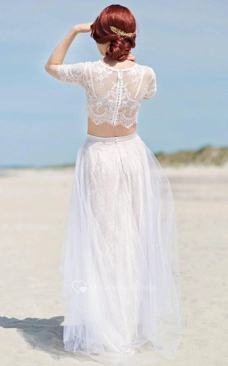 Tulle&Lace&Satin Dress With Button&Zipper