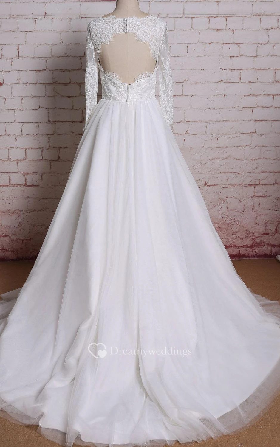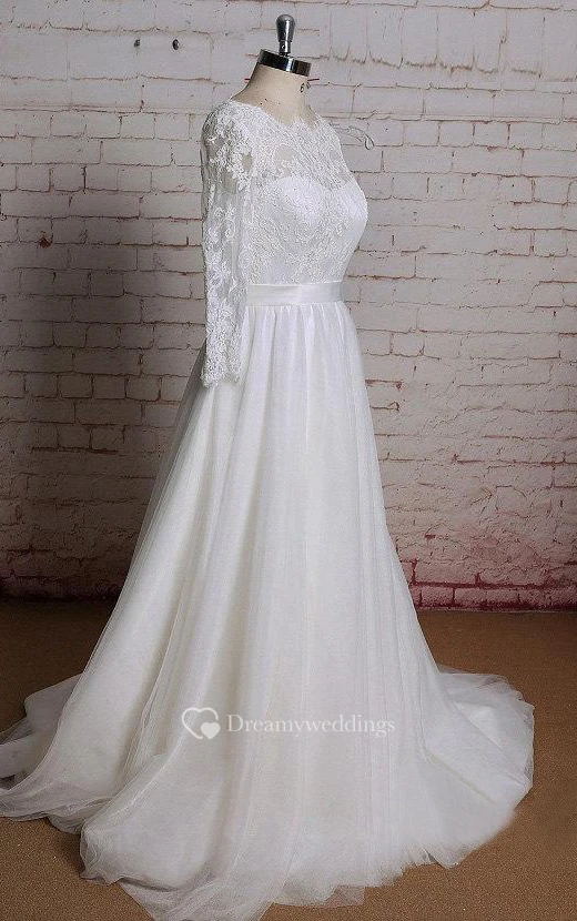 Tulle A-Line Long Sleeve Dress With Lace Bodice and Keyhole Back