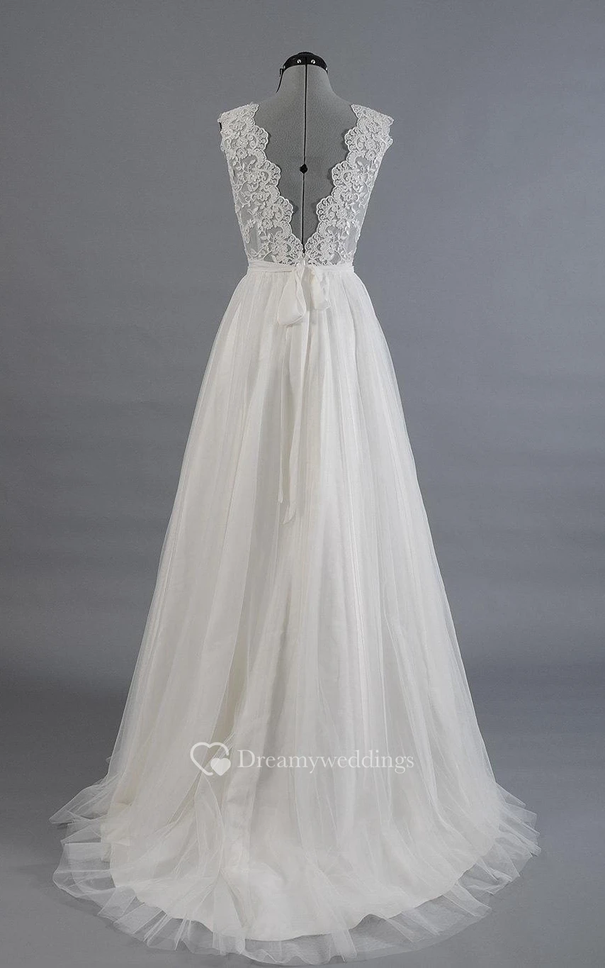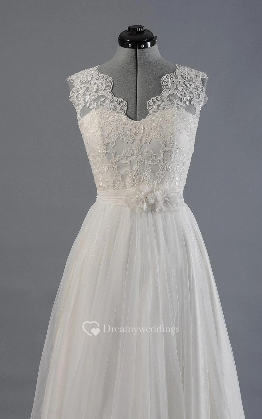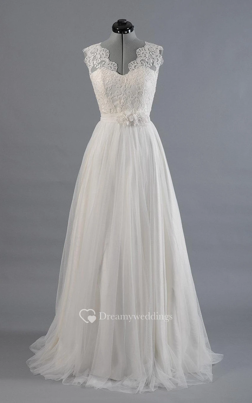 Tulle A-Line Sleeveless Dress With Scalloped-Edge Neckline and Lace Bodice